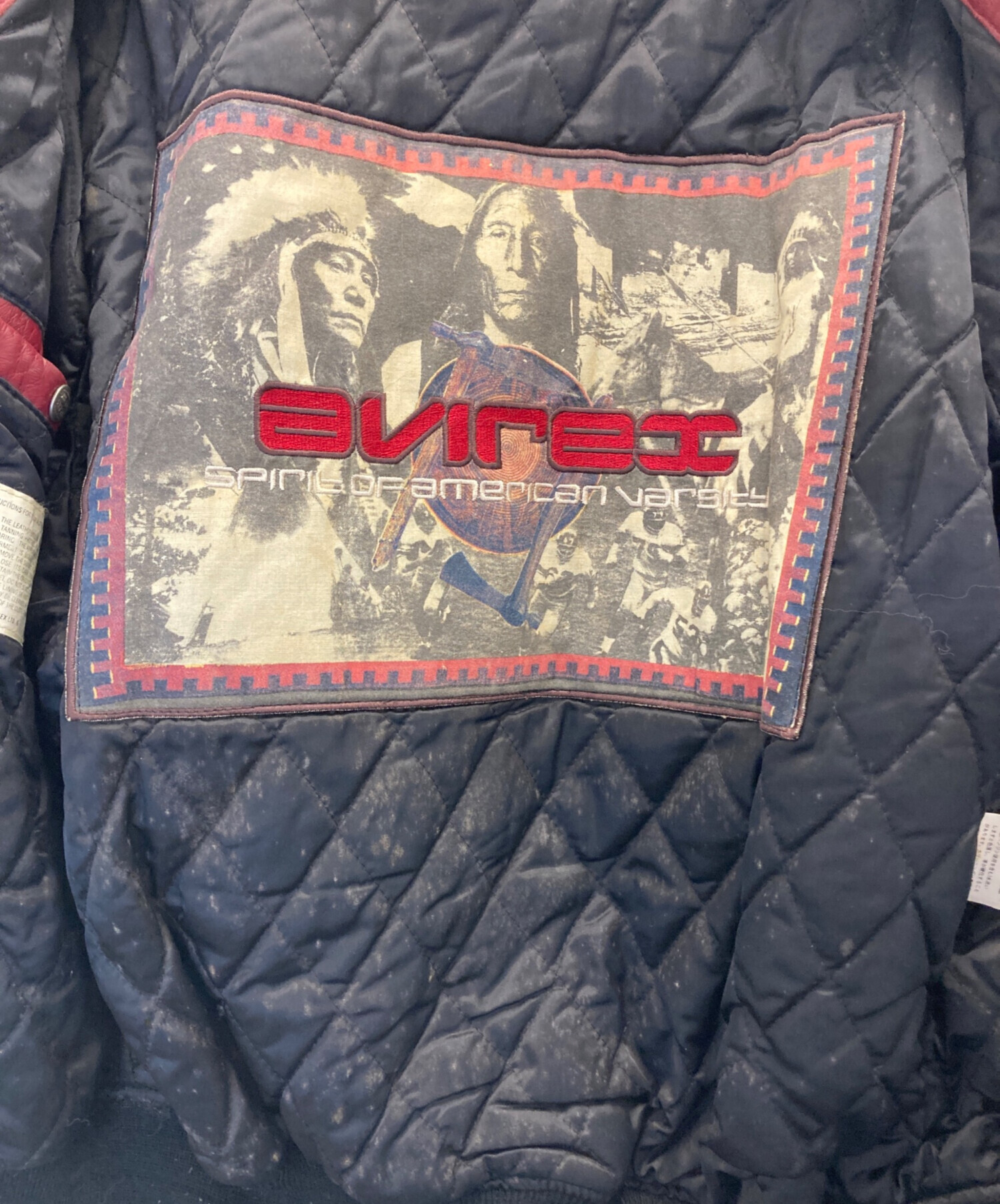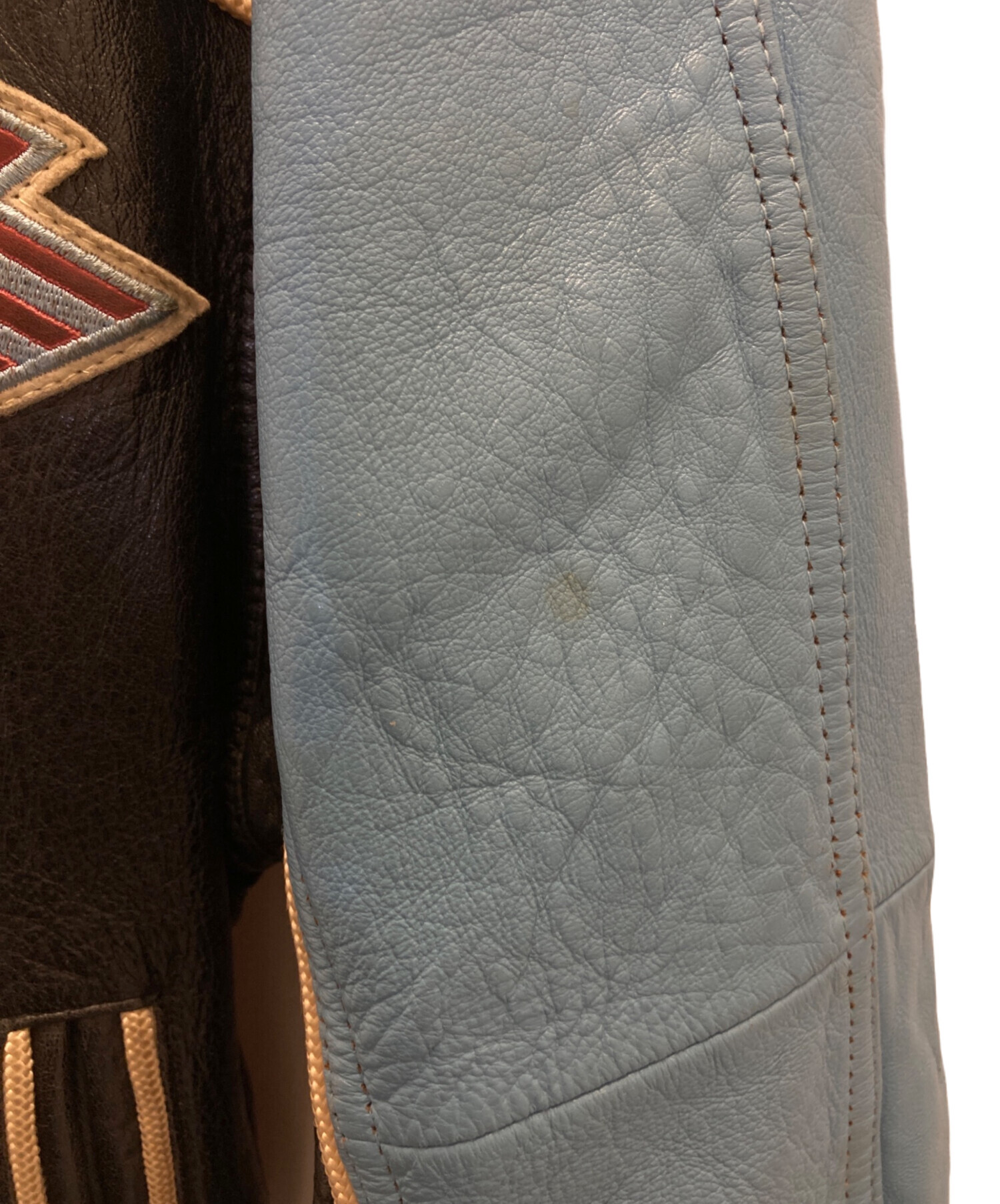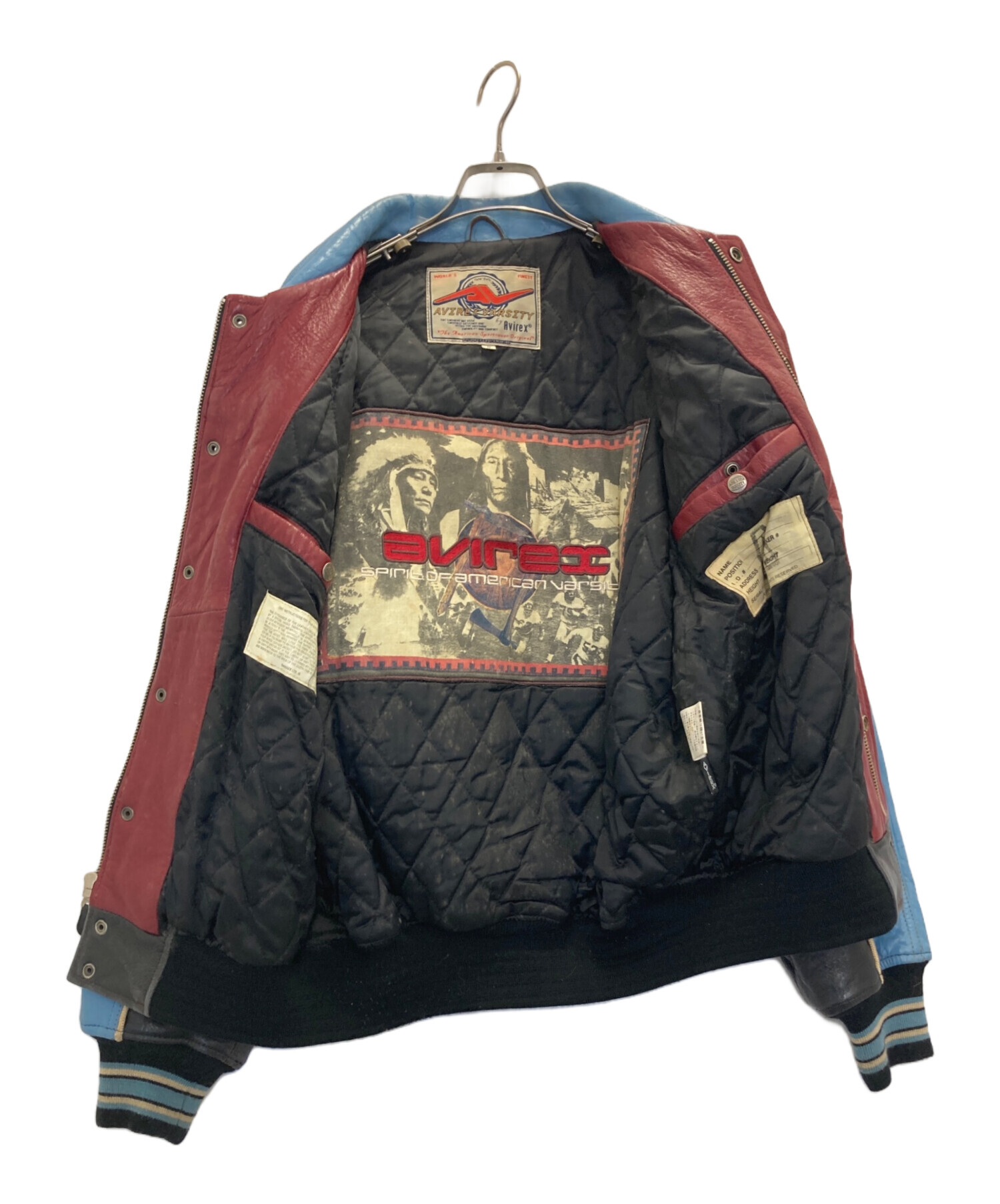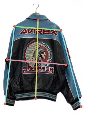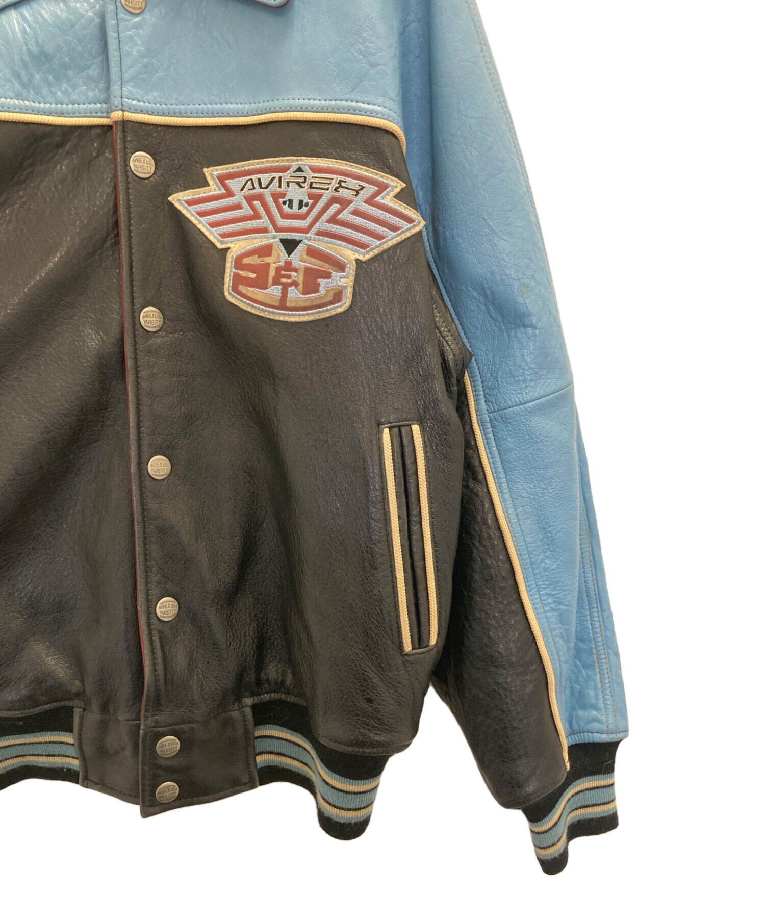 • AVIREX VARSITY(アヴィレックスバーシティ)AVIREX VARSITY (アヴィレックスバーシティ) LEATHER VARSITY JACKET ブラック×ブルー サイズ:Sの古着・服飾アイテム シミ有