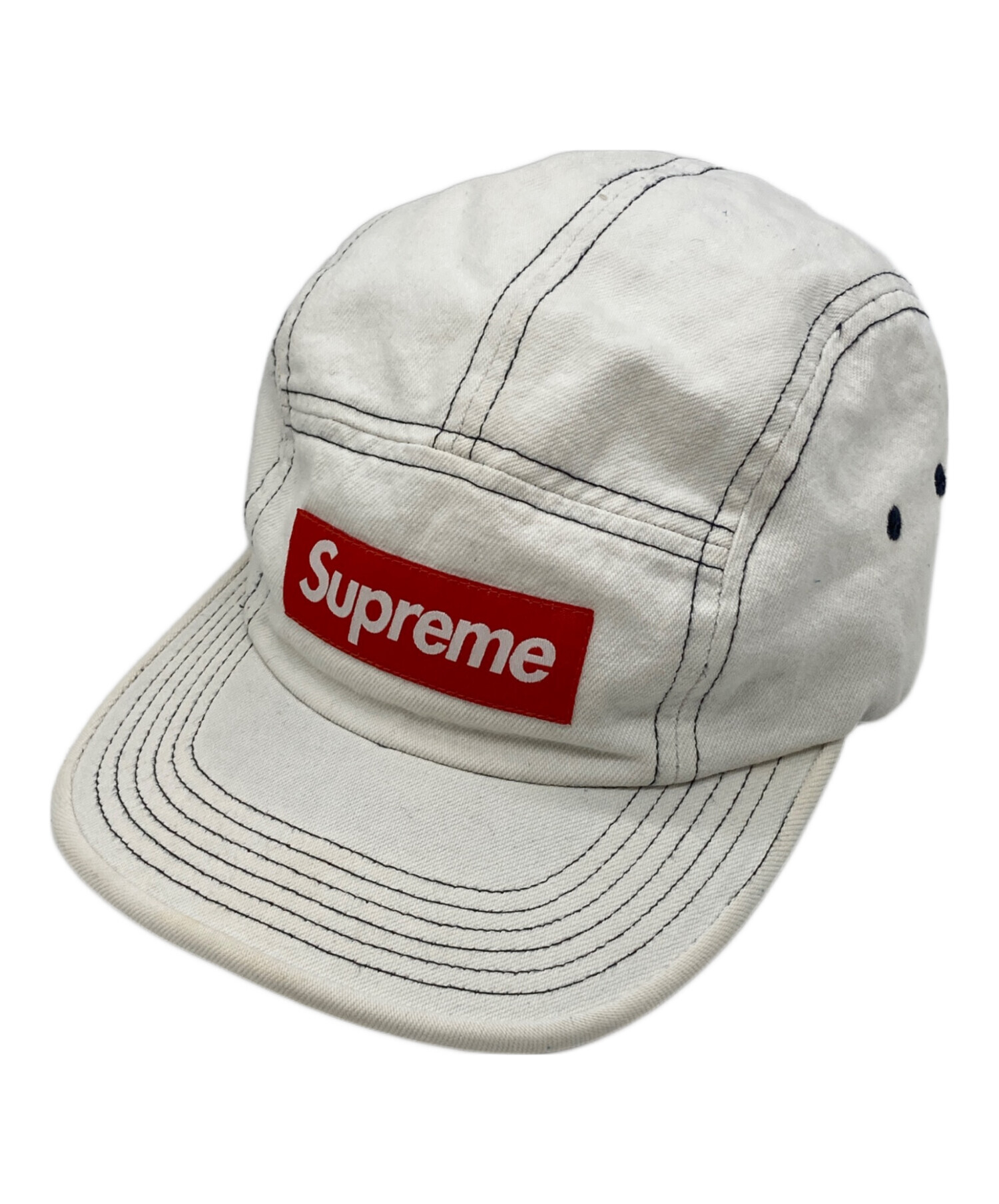 • SUPREME(シュプリーム)Supreme (シュプリーム) Contrast Stitch Camp Cap White ホワイトの古着・服飾アイテム 使用感有
