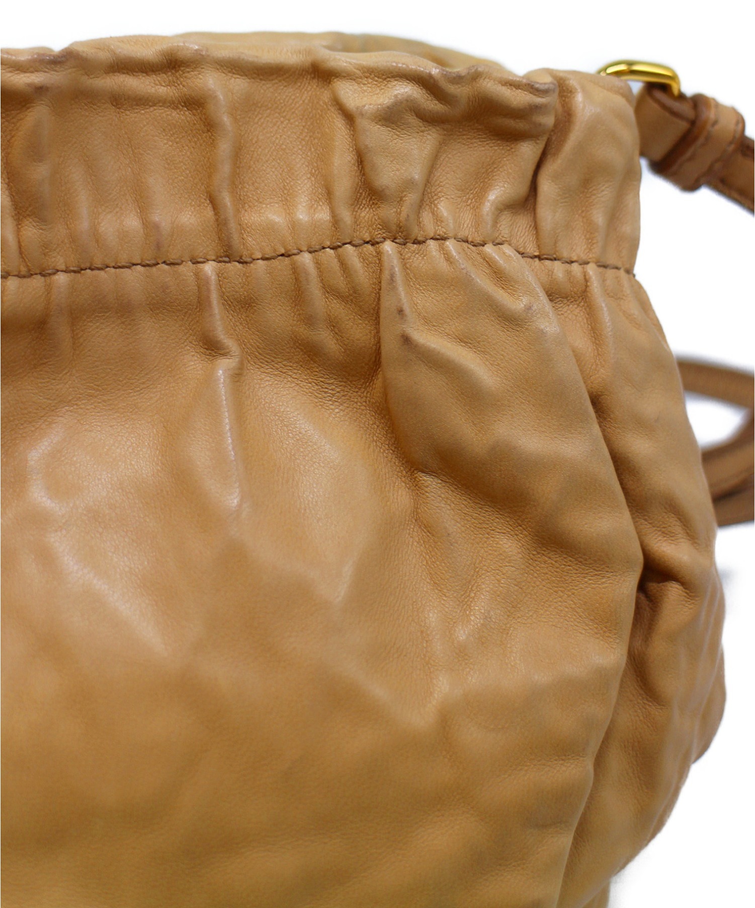 巾着型レザーポシェット