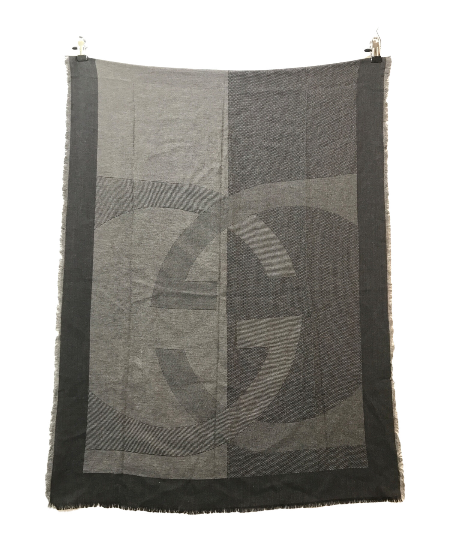 • GUCCI(グッチ)GUCCI (グッチ) シルク混ストール グレーの古着・服飾アイテム フリンジほつれ(各所)
