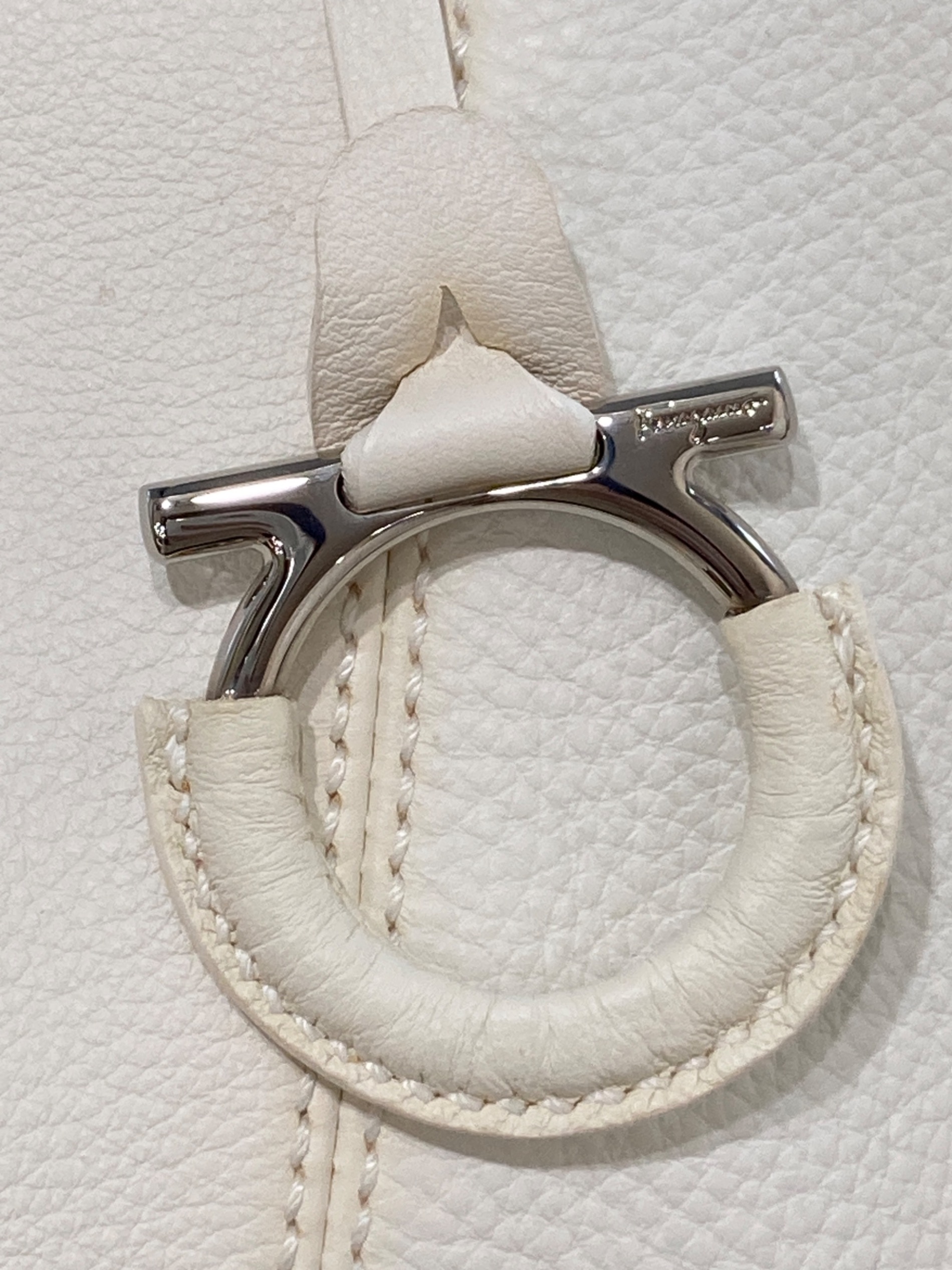 • Salvatore Ferragamo(サルヴァトーレ フェラガモ)Salvatore Ferragamo (サルヴァトーレ フェラガモ) ガンチーニストラップワンハンドルバッグ A911 アイボリーの古着・服飾アイテム 角スレ(各所)
