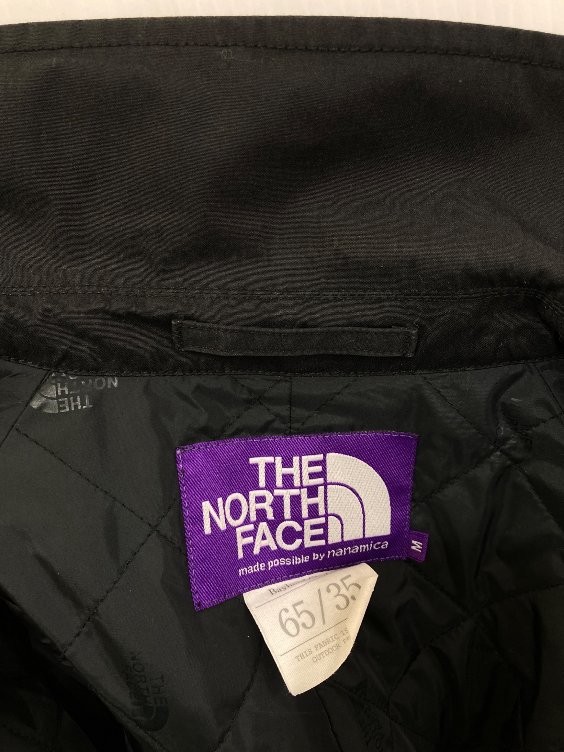 • THE NORTHFACE PURPLELABEL(ザ・ノースフェイス パープルレーベル)THE NORTHFACE PURPLELABEL (ザ・ノースフェイス パープルレーベル) BEAMS (ビームス) 65/35インサレーションビッグステンカラーコート ブラック サイズ:Mの古着・服飾アイテム 袖裏ヨゴレ