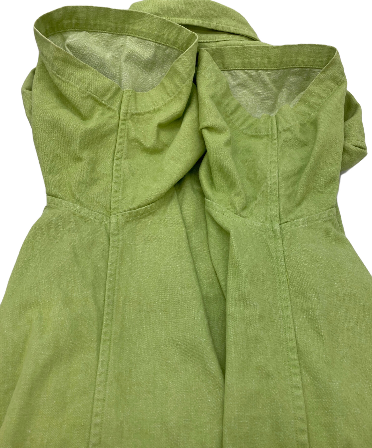 目立つシミや汚れ、におい等がある場合は商品画像や説明文にて極力表記させていただいておりますが、中古品という商品の特性上、全ての瑕疵や不備、洋服直し箇所を撮影・記載をすることは難しくなっております。また、ほとんどのアイテムは店頭と併売しておりますため、出品掲載時からコンディションが変動している場合もございます。あらかじめご了承くださいませ。