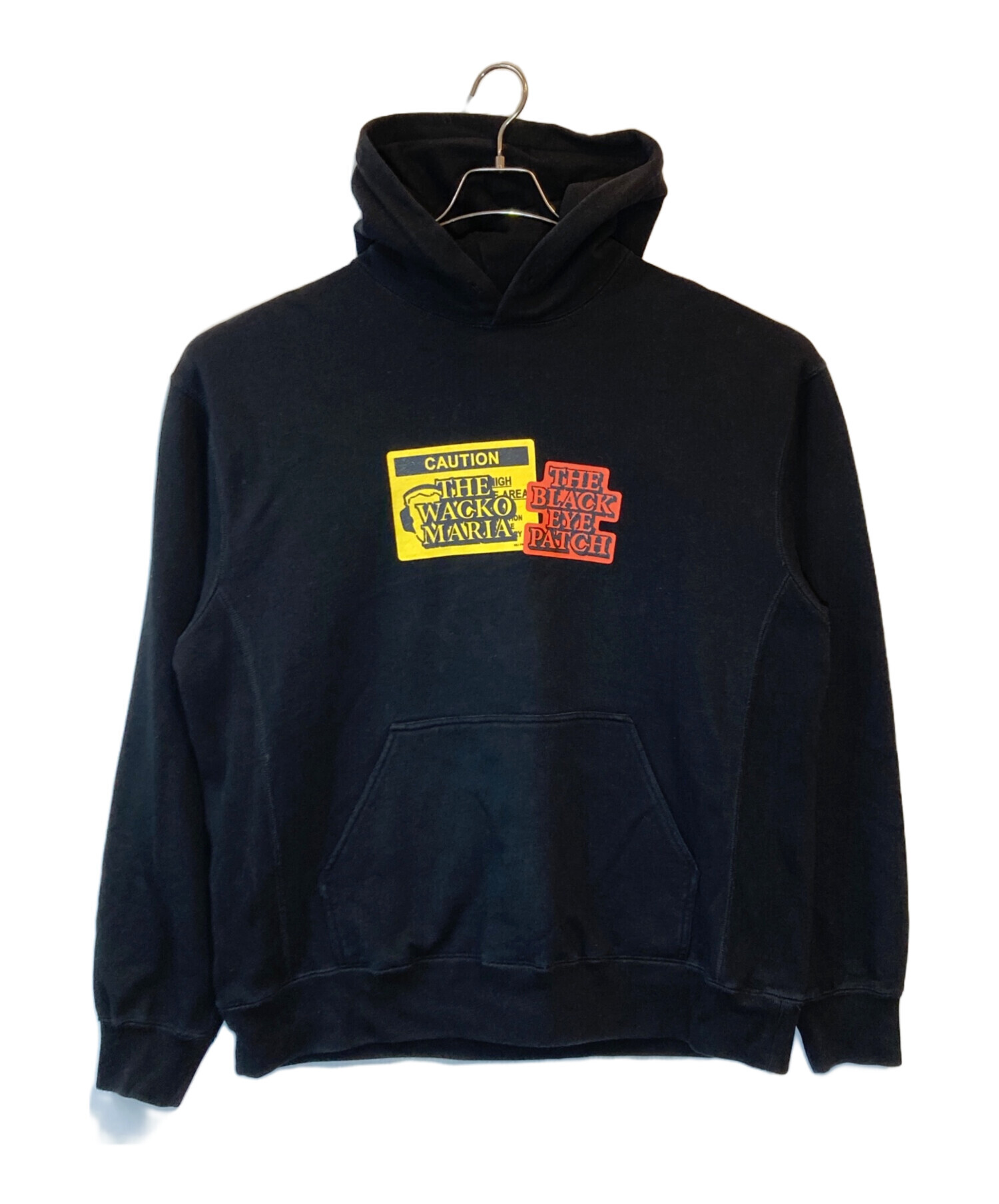 • THE BLACK EYE PATCH(ブラックアイパッチ)THE BLACK EYE PATCH (ブラックアイパッチ) WACKO MARIA (ワコマリア) コラボフーディー ブラック サイズ:XLの古着・服飾アイテム 色褪せ、アタリ有
