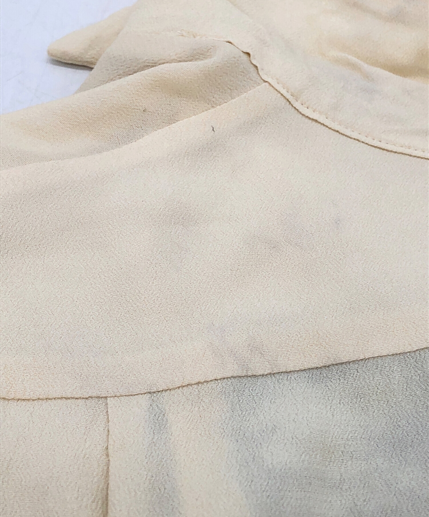目立つシミや汚れ、におい等がある場合は商品画像や説明文にて極力表記させていただいておりますが、中古品という商品の特性上、全ての瑕疵や不備、洋服直し箇所を撮影・記載をすることは難しくなっております。また、ほとんどのアイテムは店頭と併売しておりますため、出品掲載時からコンディションが変動している場合もございます。あらかじめご了承くださいませ。
