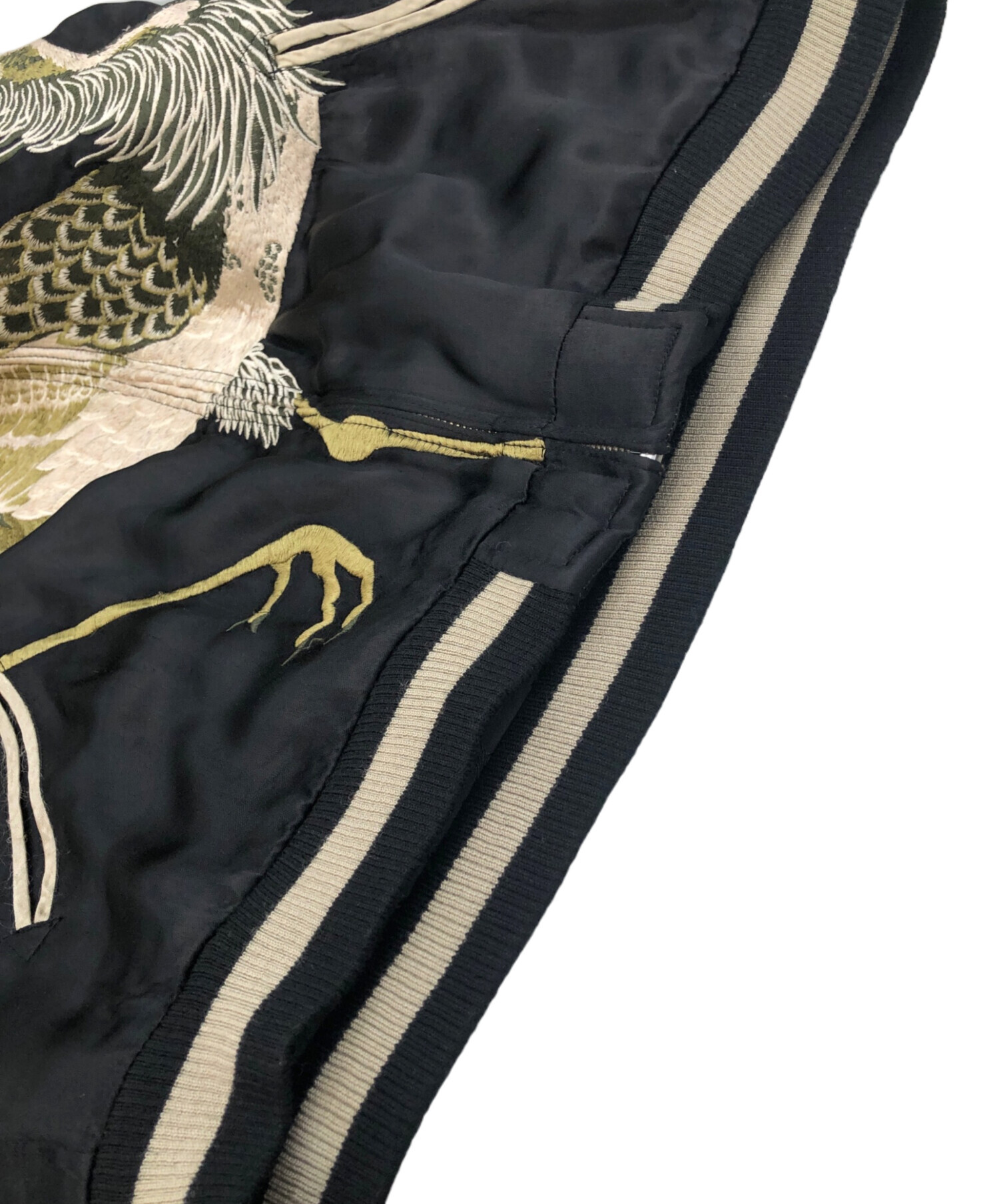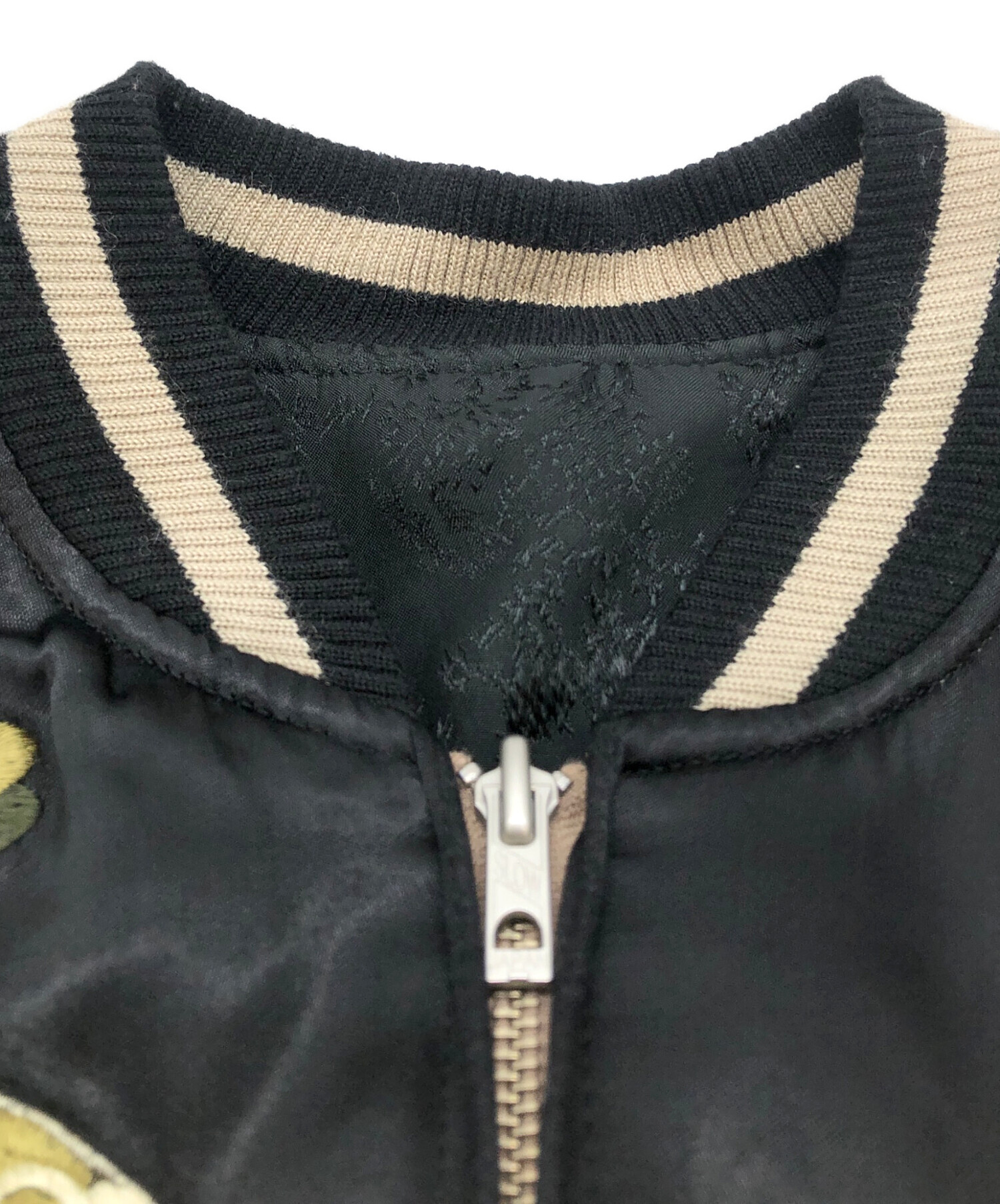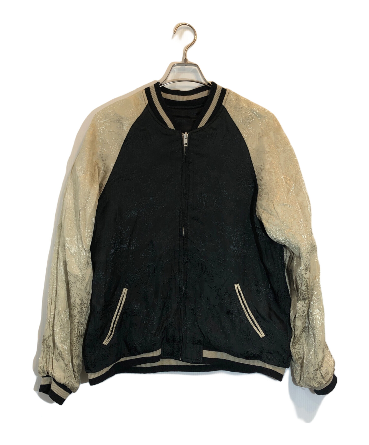 • 花旅楽団(ハナタビガクダン)花旅楽団 (ハナタビガクダン) リバーシンブルスカジャン ブラック×オリーブ サイズ:SIZE Lの古着・服飾アイテム スレ、ヒキツレ、毛羽立ち有