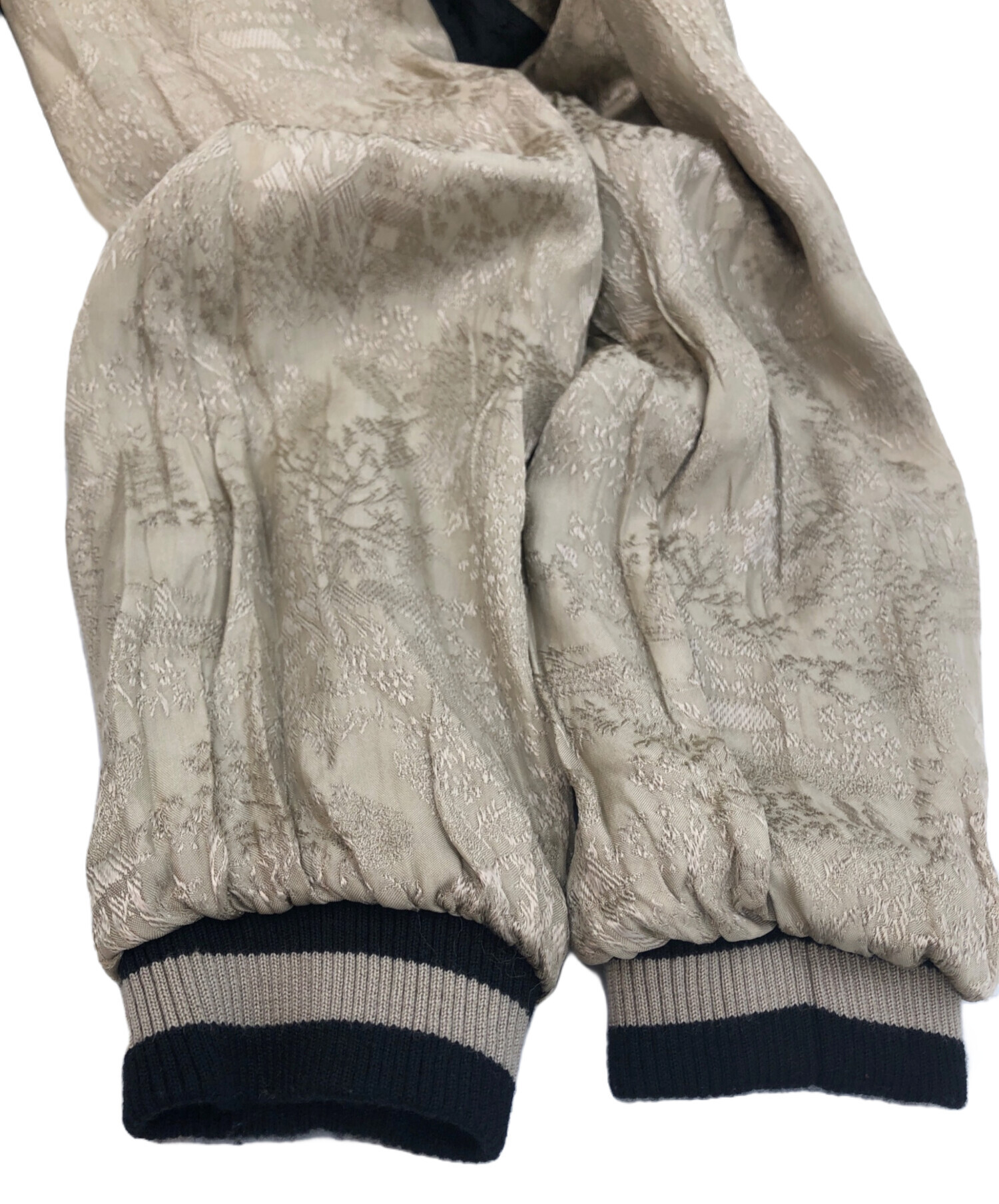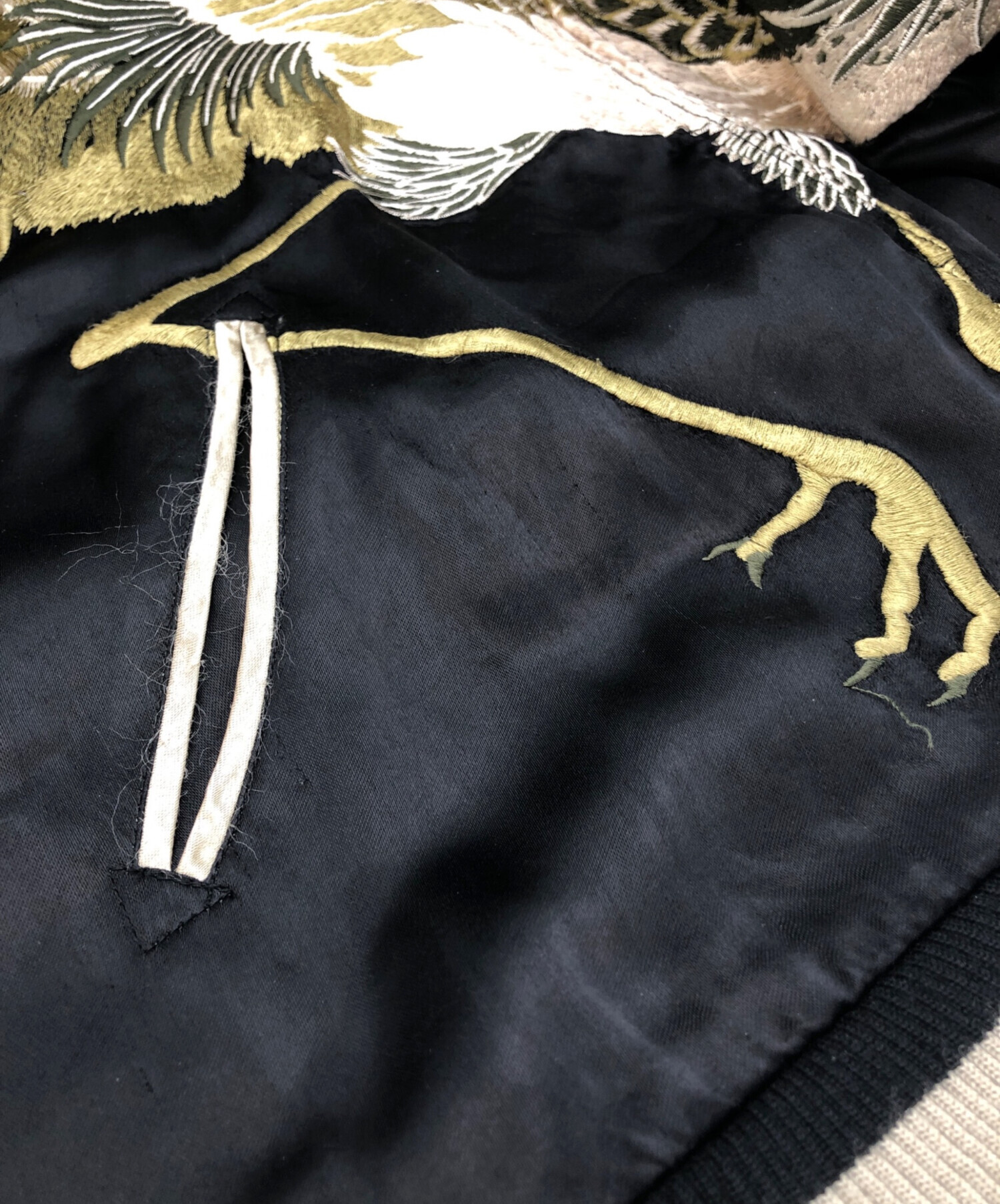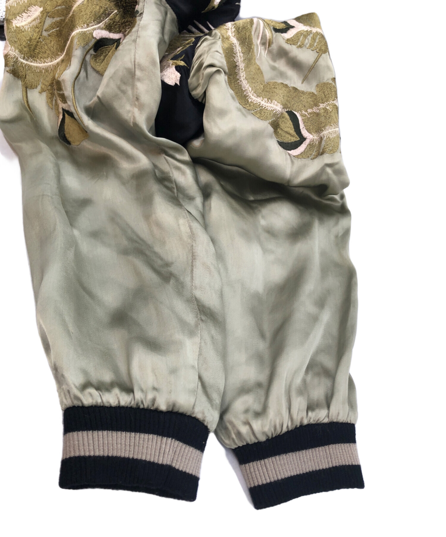 • 花旅楽団(ハナタビガクダン)花旅楽団 (ハナタビガクダン) リバーシンブルスカジャン ブラック×オリーブ サイズ:SIZE Lの古着・服飾アイテム スレ、毛羽立ち有