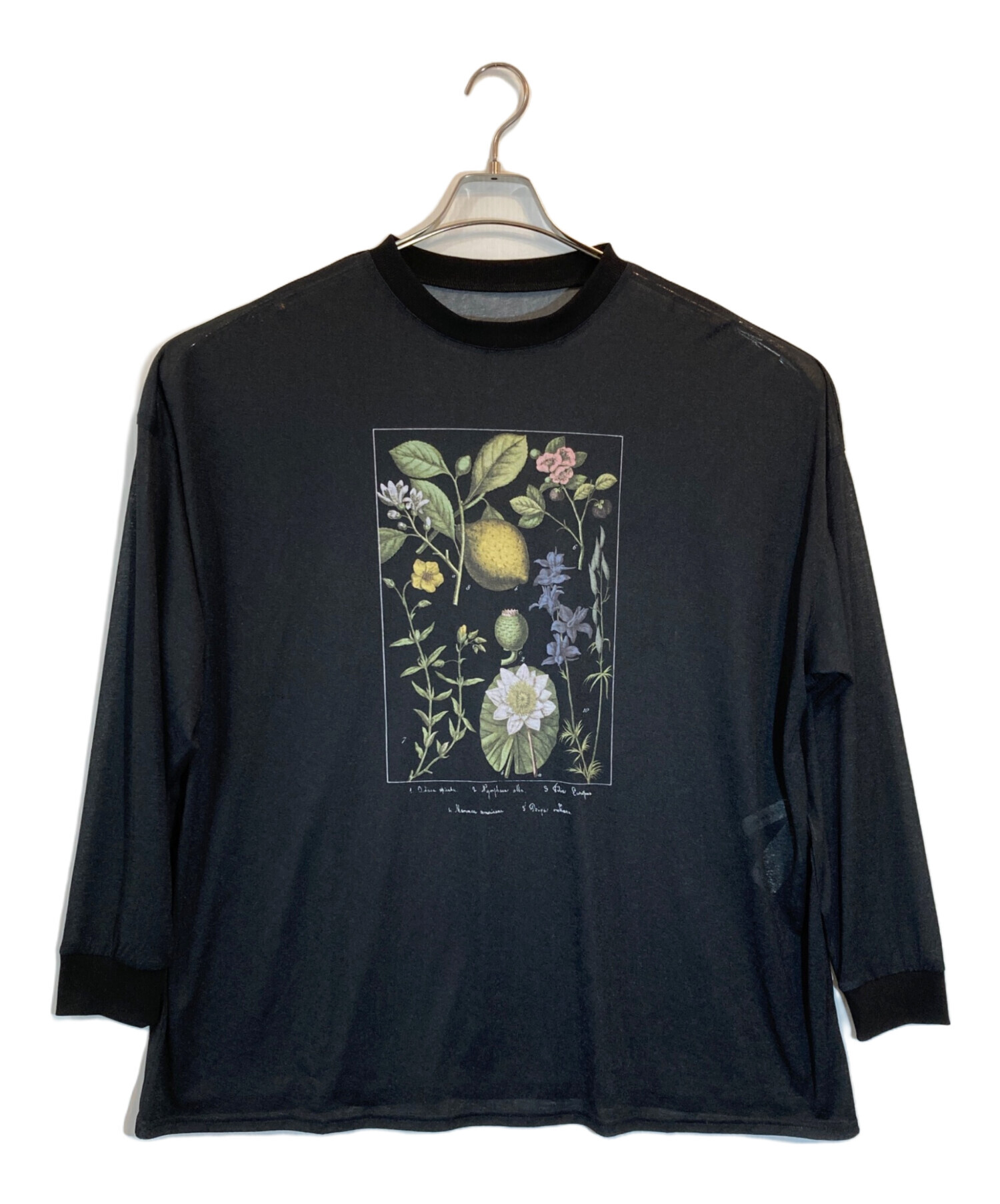 • Ameri(アメリ)AMERI (アメリ) BOTANICAL SHEER LONG TEE ブラック サイズ:SIZE Freeの古着・服飾アイテム 首元ホツレ、ヨゴレ有