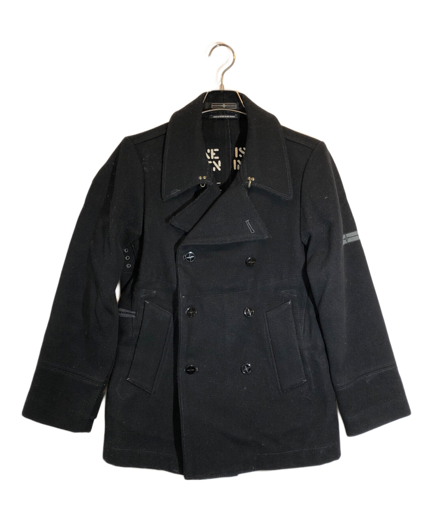 • STONE ISLAND(ストーンアイランド)STONE ISLAND (ストーンアイランド) メルトンウールPコート ブラック サイズ:SIZE Sの古着・服飾アイテム 袖口スレ・ヨゴレ有