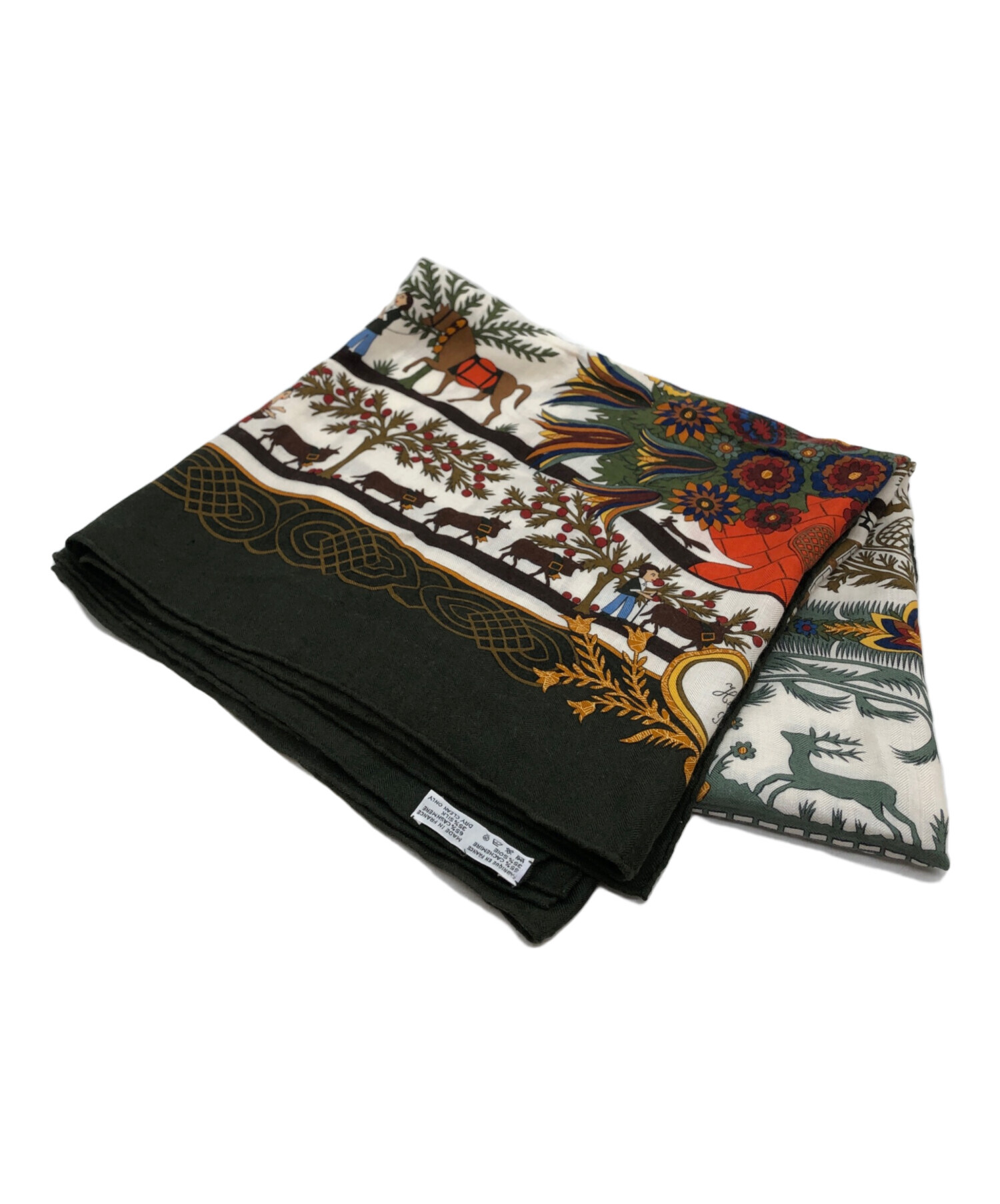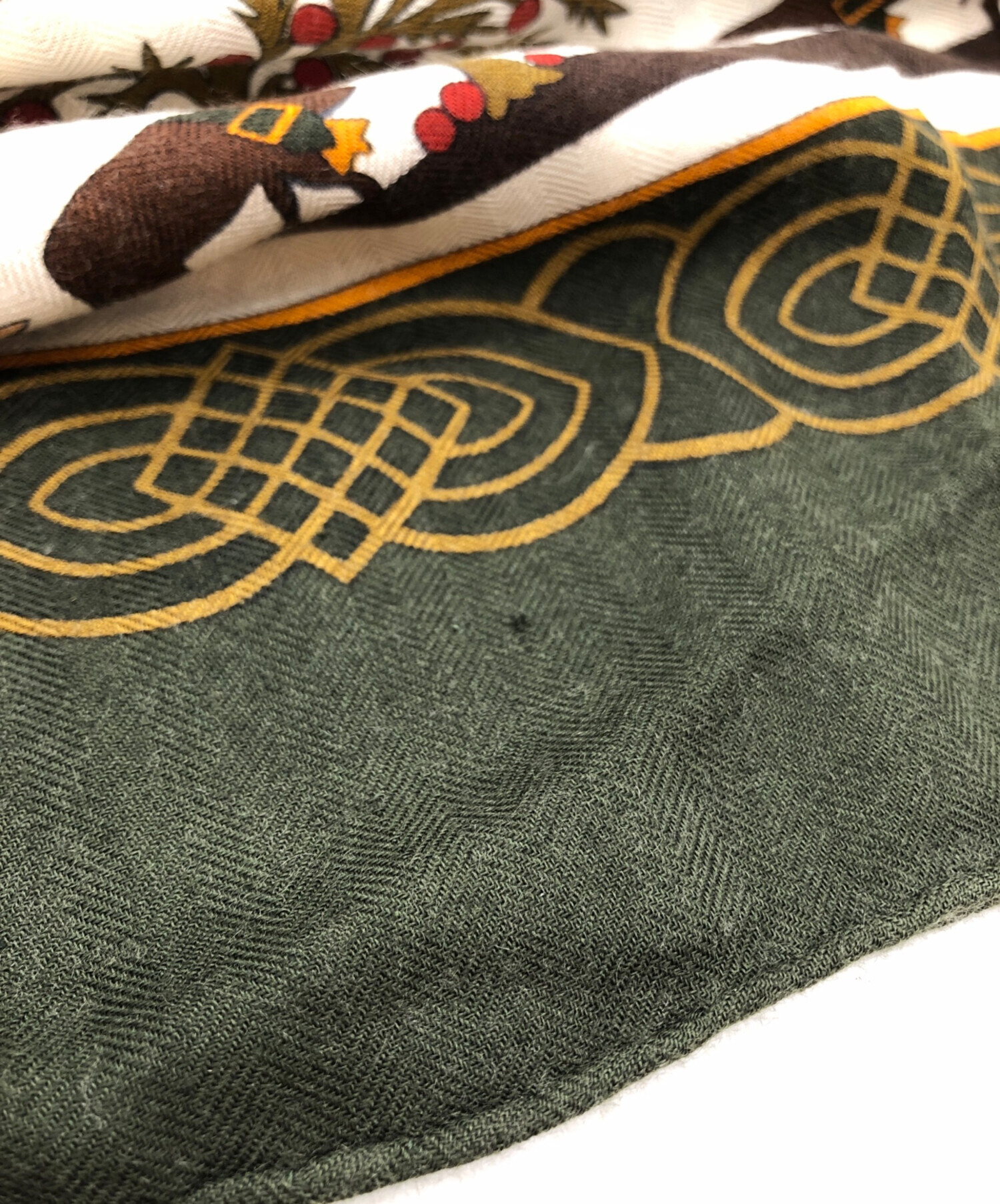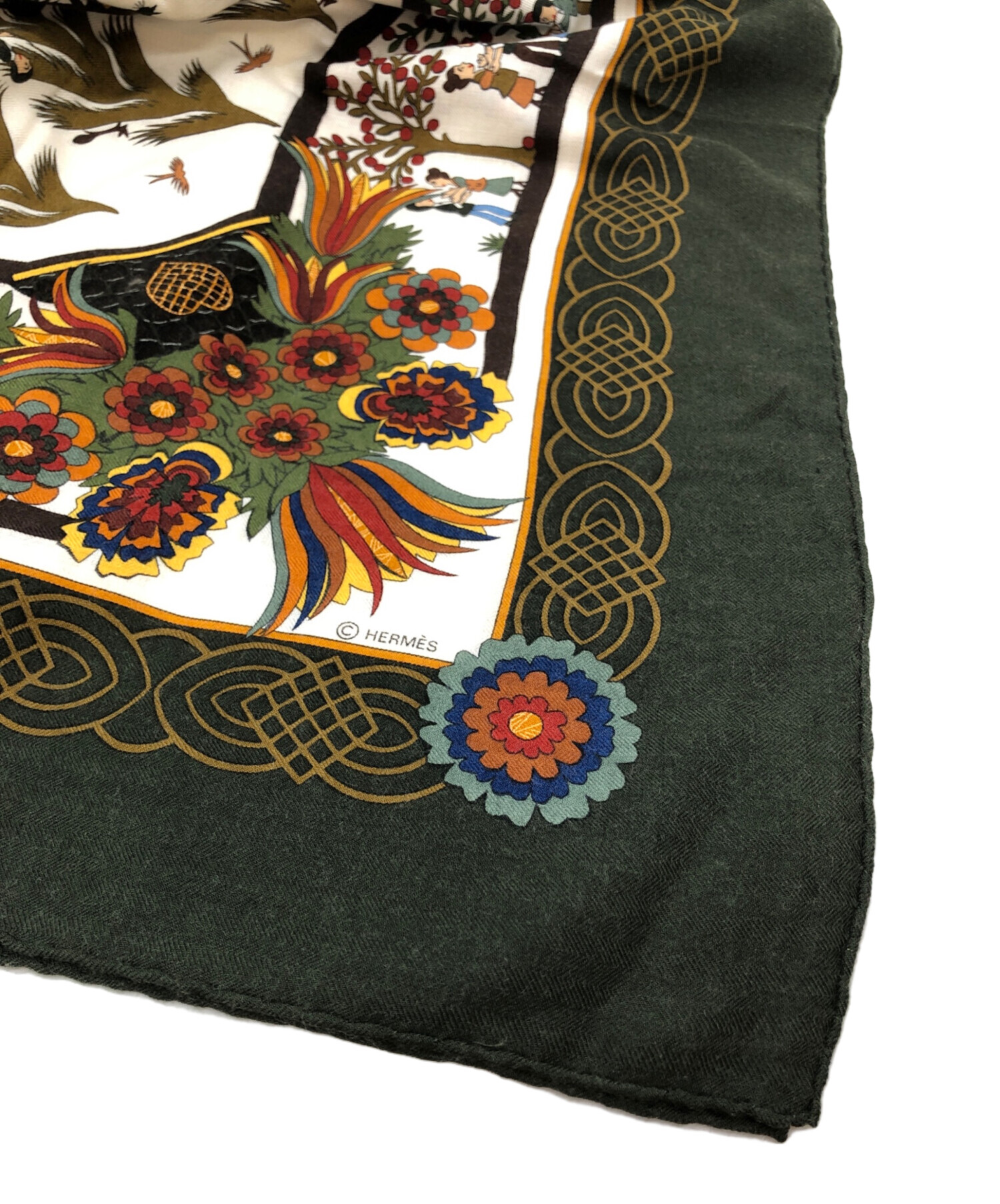 • HERMES(エルメス)HERMES (エルメス) カレ140 カシミヤシルク大判スカーフ グリーンの古着・服飾アイテム 各所ホツレ有