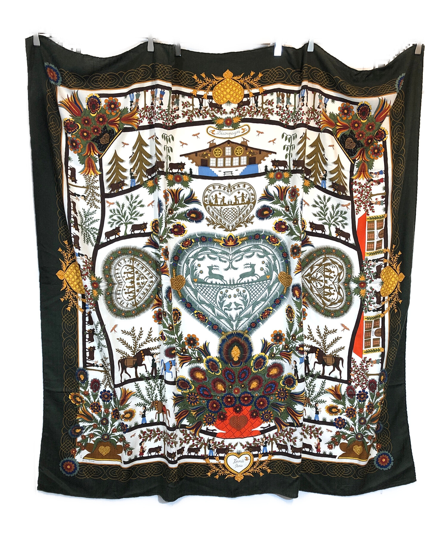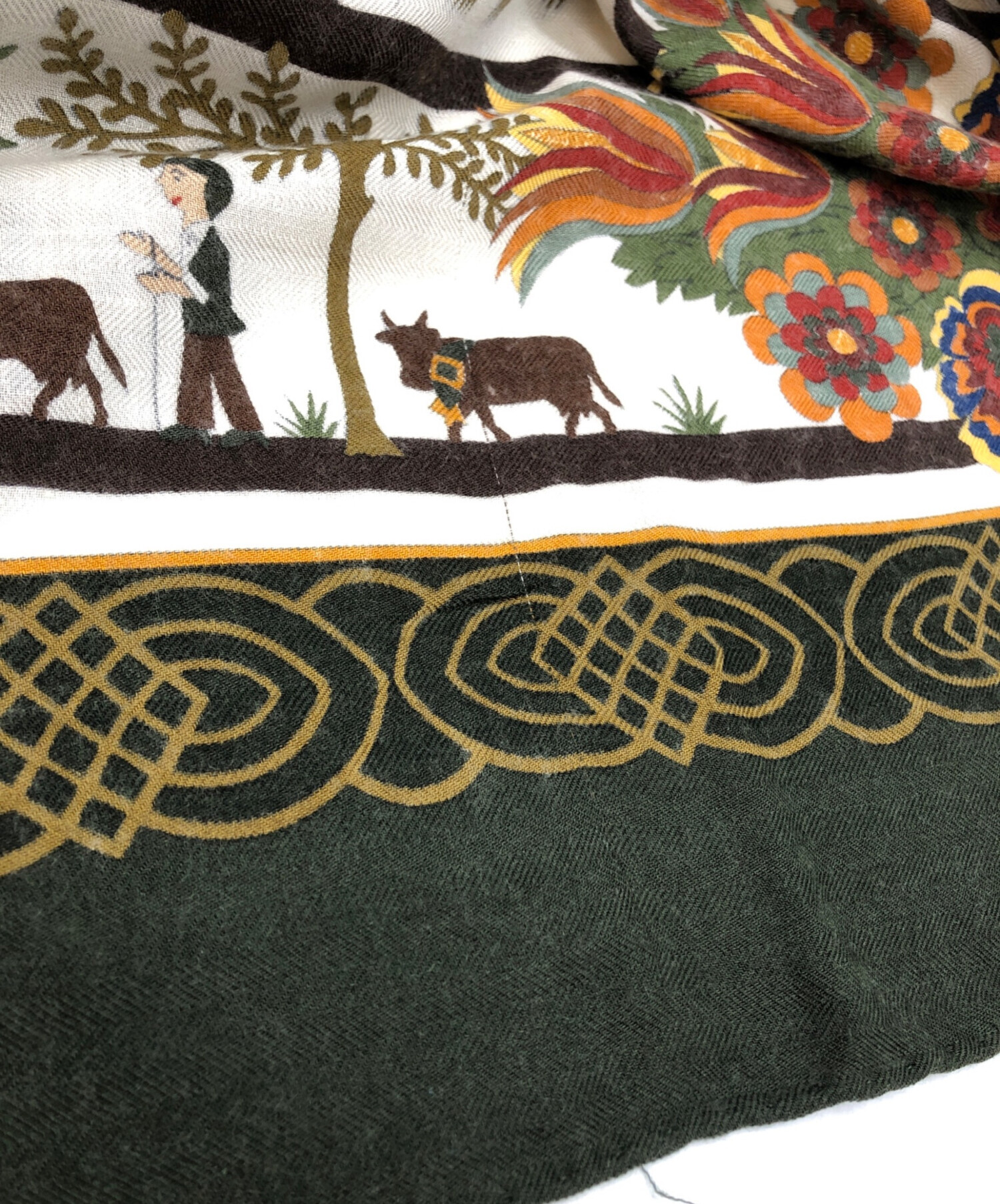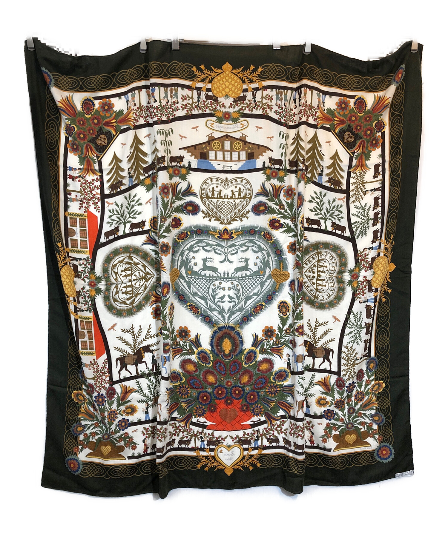 • HERMES(エルメス)HERMES (エルメス) カレ140 カシミヤシルク大判スカーフ グリーンの古着・服飾アイテム 各所ホツレ有