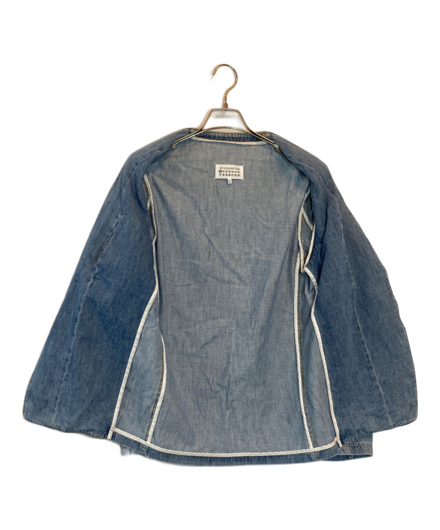 • Maison Margiela(メゾンマルジェラ)Maison Margiela (メゾンマルジェラ) ノーカラーデニムジャケット インディゴ サイズ:SIZE 46の古着・服飾アイテム 内部裾ヨゴレ有
