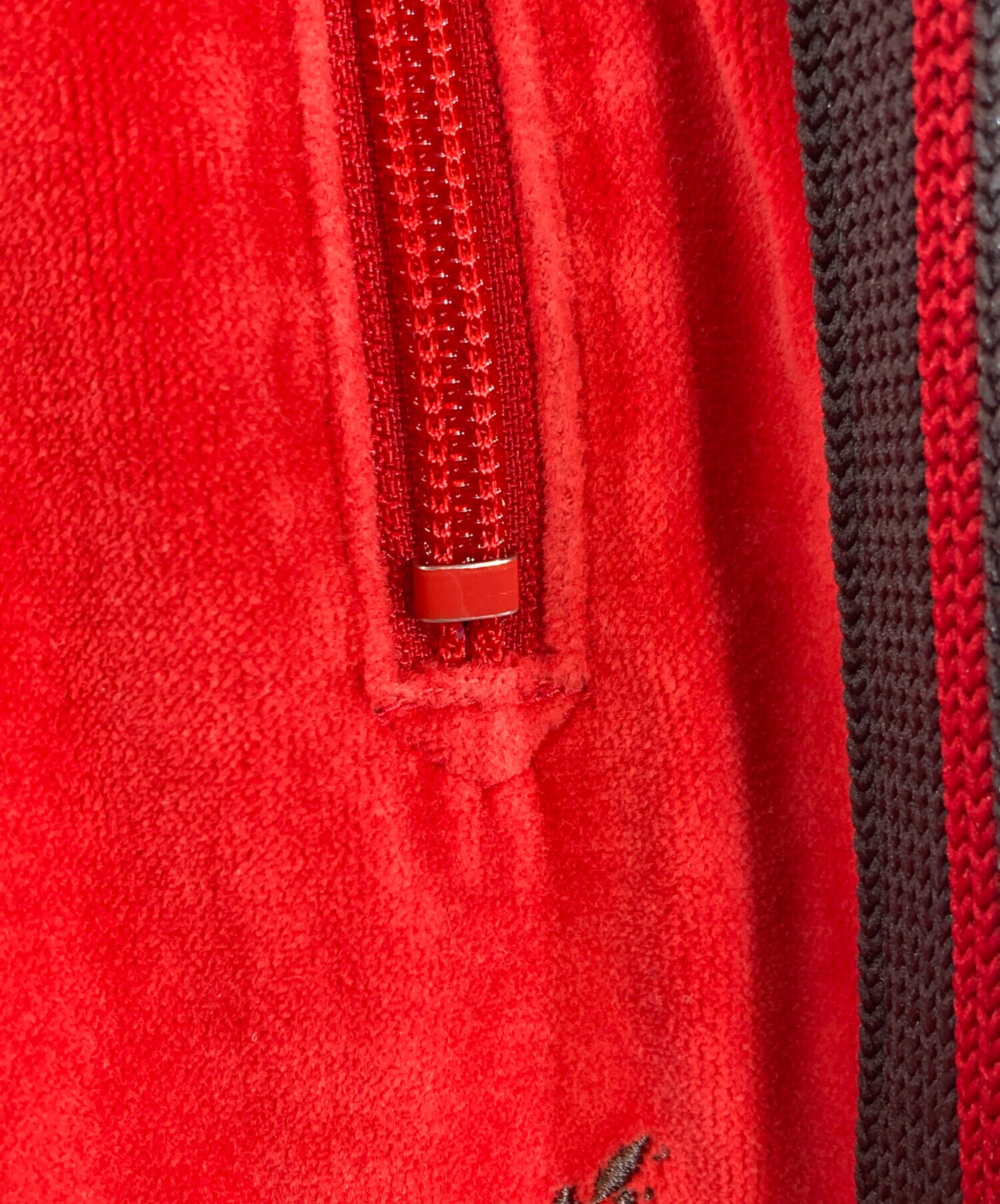 • Needles(ニードルズ)Needles (ニードルズ) ベロアトラックパンツ レッド サイズ:XSの古着・服飾アイテム 金具塗装剥がれ