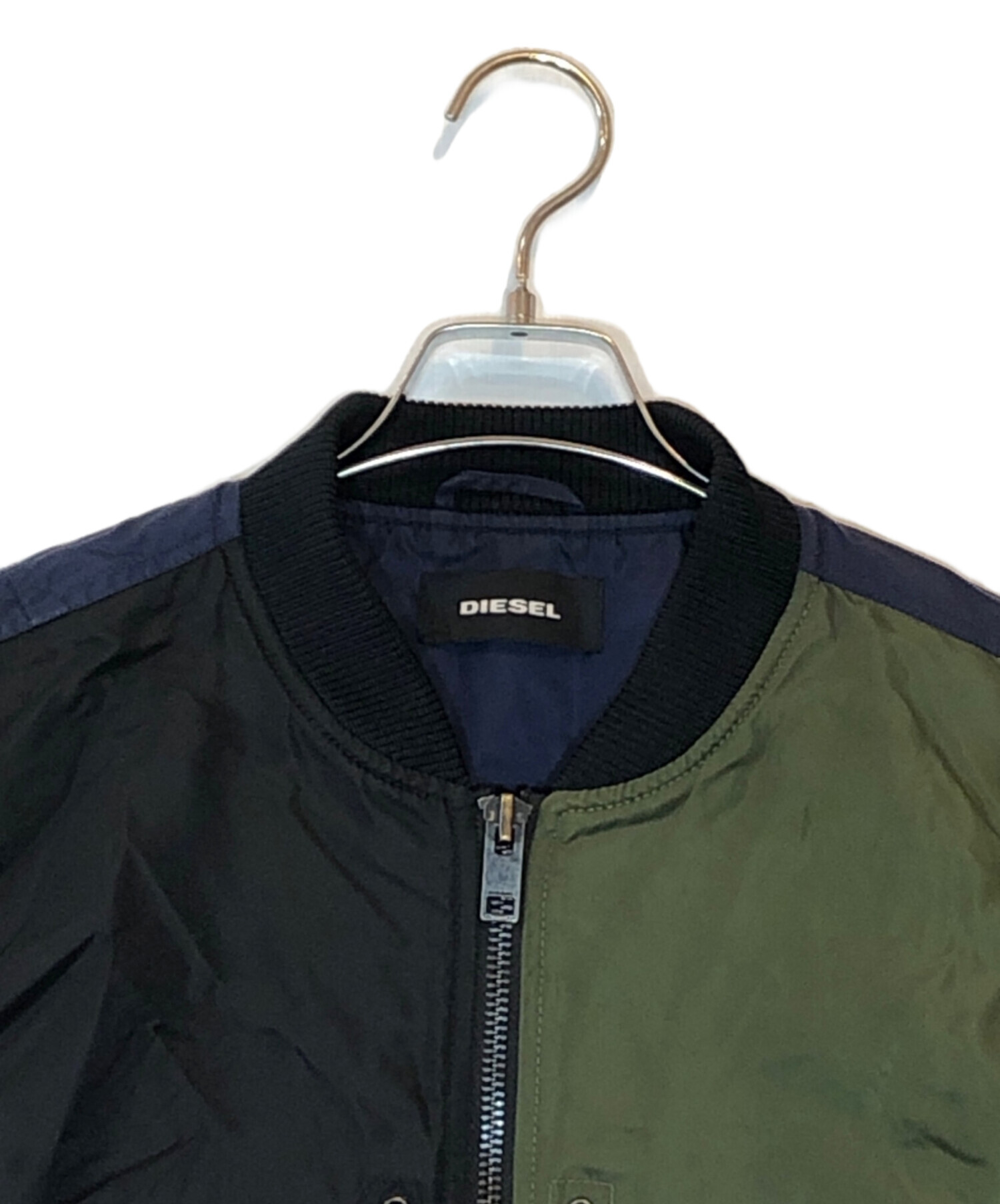 • DIESEL(ディーゼル)DIESEL (ディーゼル) カラーブロックMA-1ジャケット ネイビー サイズ:XLの古着・服飾アイテム 金具スレ有