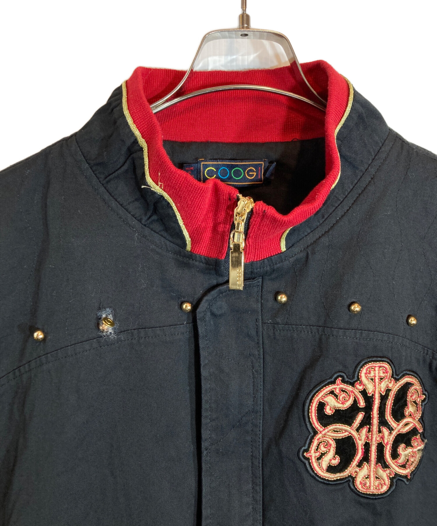 • Coogi(クージー)COOGI (クージー) スタッズ デザインジャケット ブラック サイズ:XXLの古着・服飾アイテム ヤブレ有