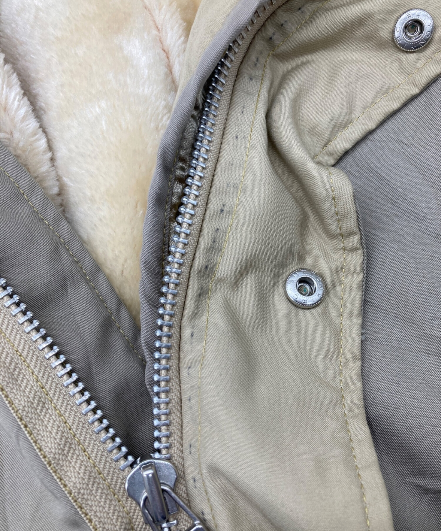 目立つシミや汚れ、におい等がある場合は商品画像や説明文にて極力表記させていただいておりますが、中古品という商品の特性上、全ての瑕疵や不備、洋服直し箇所を撮影・記載をすることは難しくなっております。また、ほとんどのアイテムは店頭と併売しておりますため、出品掲載時からコンディションが変動している場合もございます。あらかじめご了承くださいませ。
