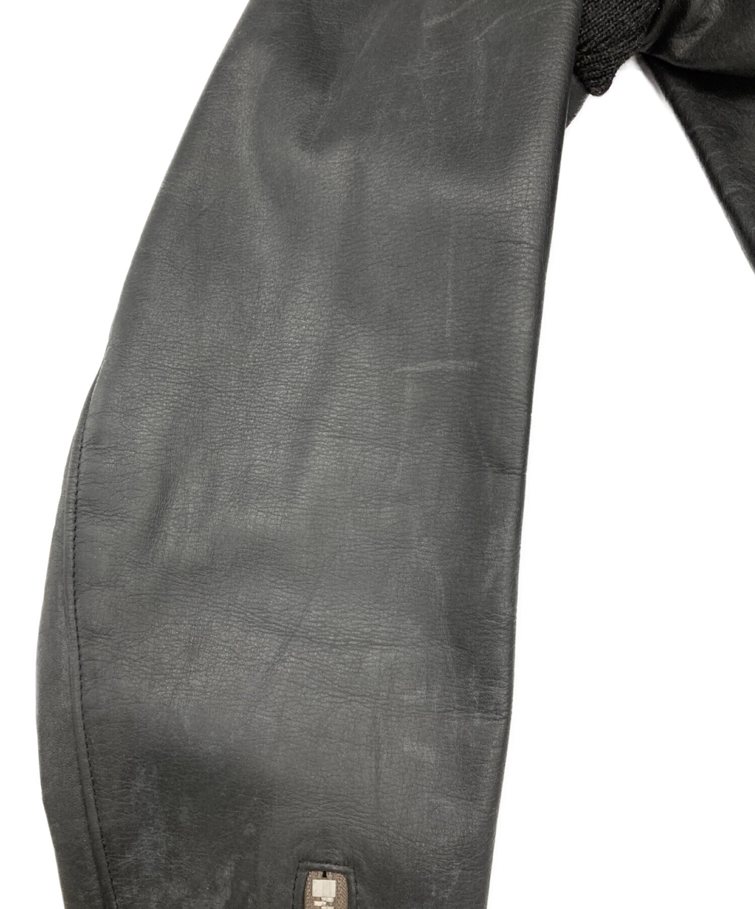 素材 表地:牛革、ニット部分:ウール100%、コットン100%、見頃裏:コットン100%、袖裏:キュプラ100%