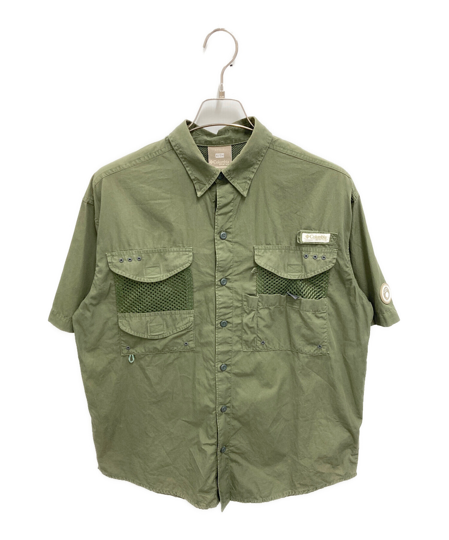 • KITH(キス)KITH (キス) Columbia (コロンビア) PFG 半袖シャツ オリーブ サイズ:Sの古着・服飾アイテム 襟ヨゴレ