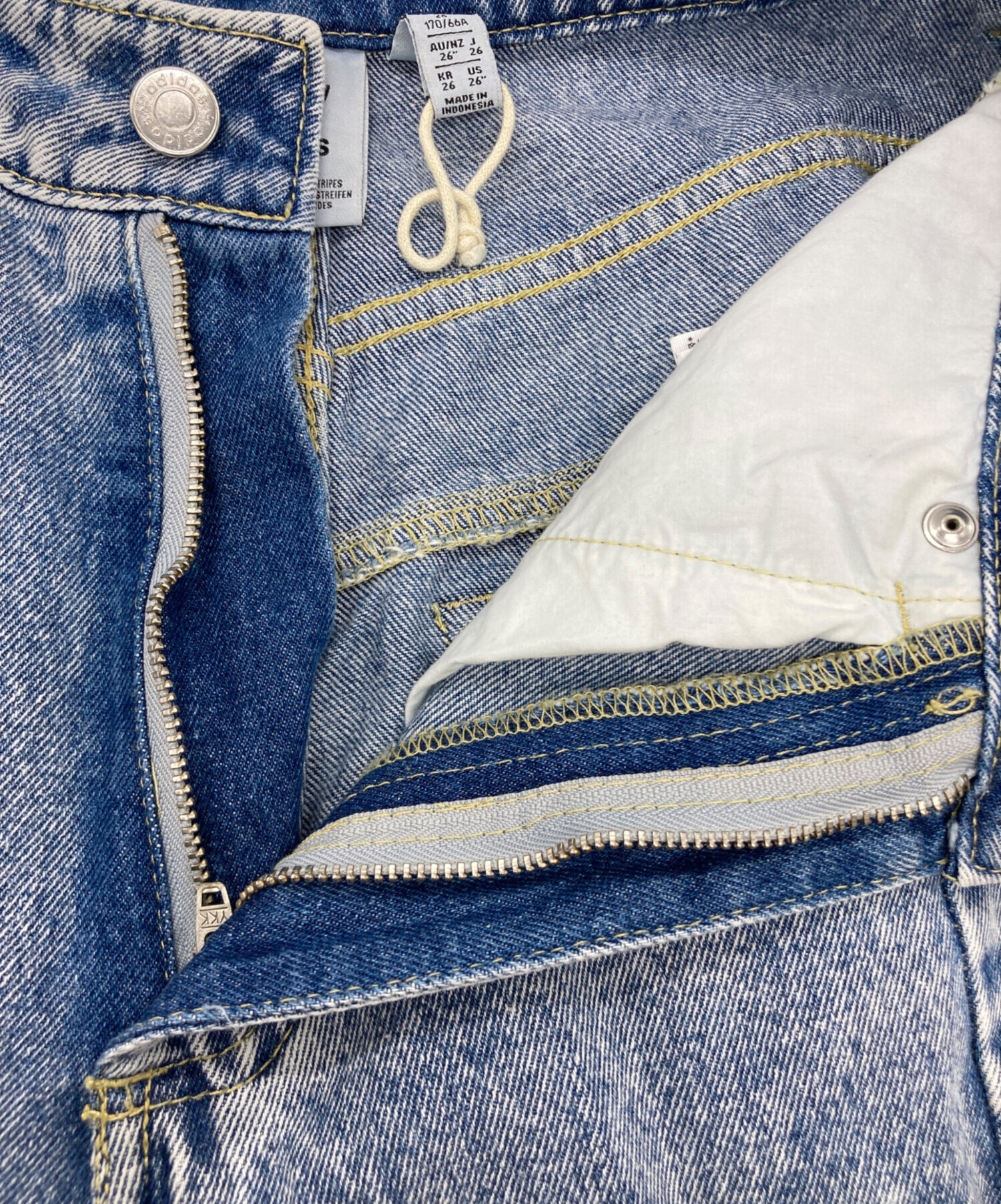 • adidas(アディダス)adidas (アディダス) アディブレイク デニムジーンズ インディゴ サイズ:26の古着・服飾アイテム 裾ダメージ、ヨゴレ
