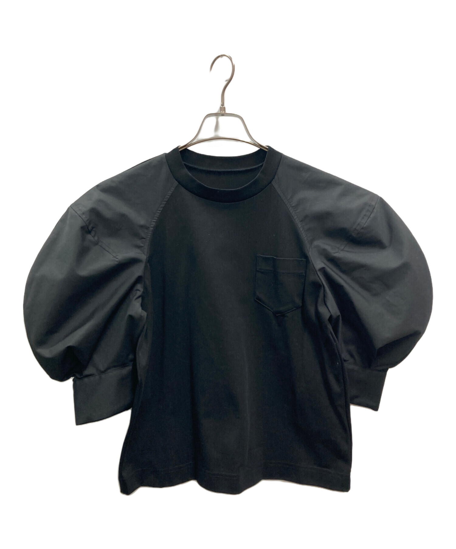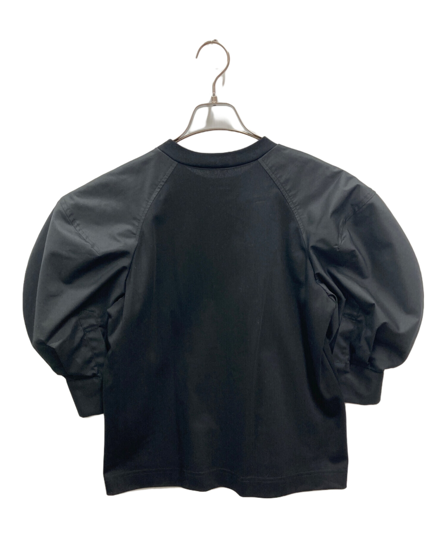 | スタッフコメント | 異素材切替を得意とするsacai(サカイ)らしいデザインのトップスです。黒一色のシンプルなデザインではありますが、ボディーと異素材のギャザーの入った大きなパフスリーブや、袖口にあしらわれたシャツカフスなどのディテールがコーディネートに華を添えてくれます。 |