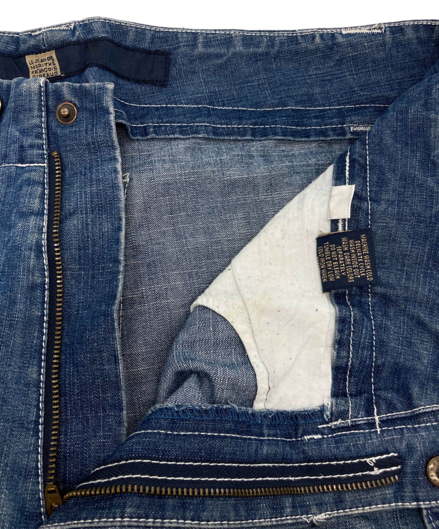 • MARITHE+FRANCOIS GIRBAUD(マリテフランソワジルボー)MARITHE+FRANCOIS GIRBAUD (マリテフランソワジルボー) [古着]シャトルパンツ インディゴ サイズ:記載なしの古着・服飾アイテム ボタン穴ホツレ