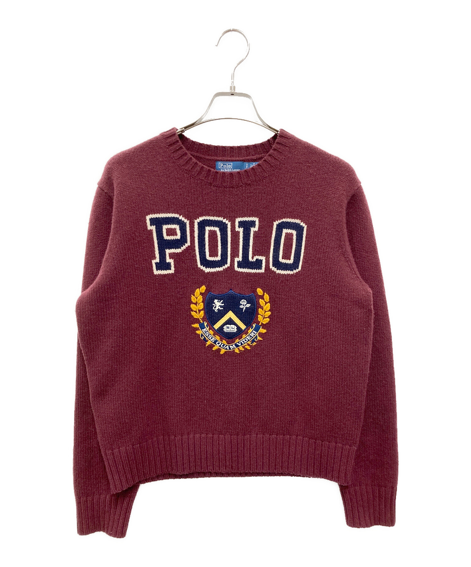 • POLO RALPH LAUREN(ポロ・ラルフローレン)POLO RALPH LAUREN (ポロ・ラルフローレン) ロゴクレストウールクルーネックセーター ボルドー サイズ:Sの古着・服飾アイテム