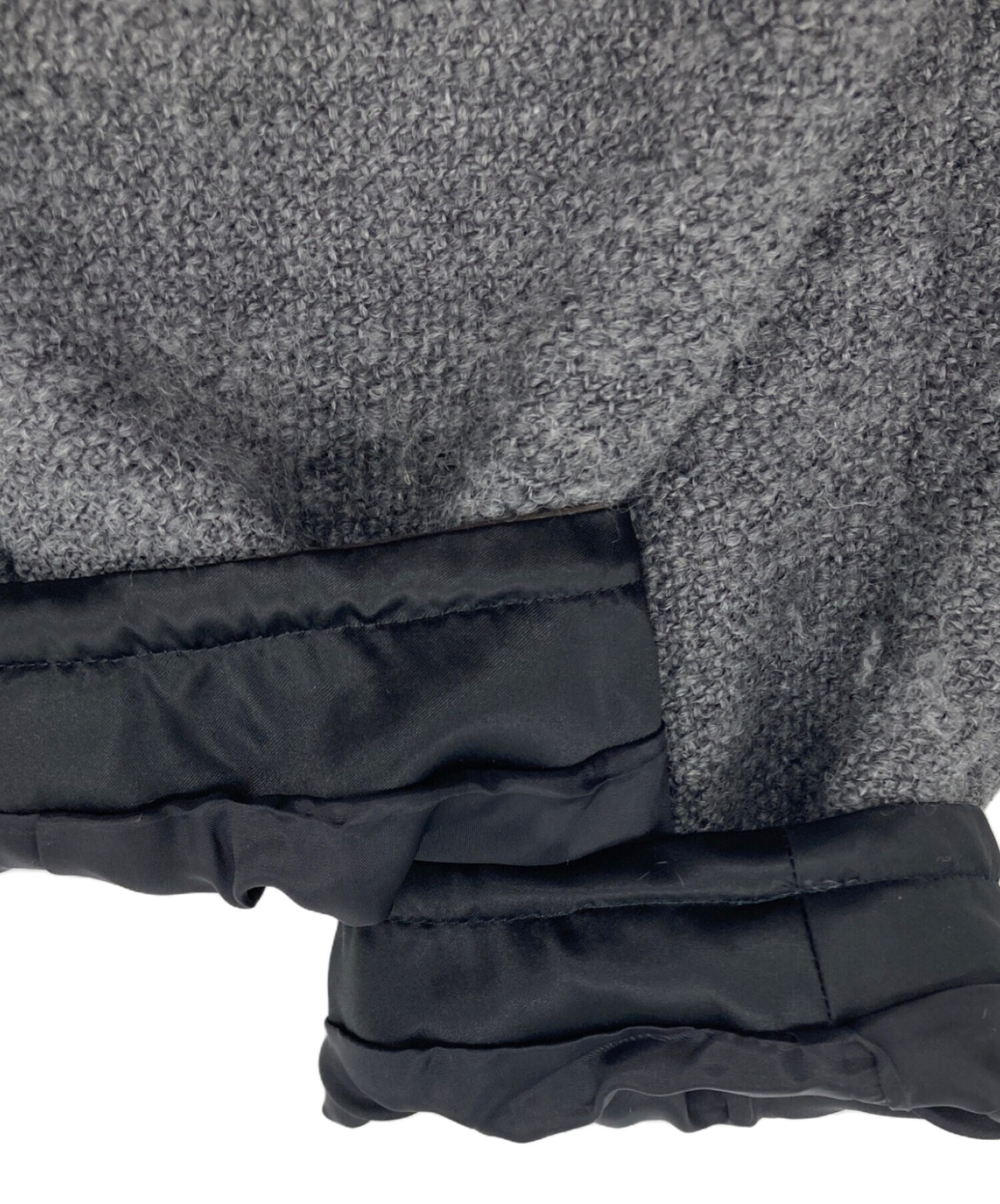 | 素材 | 表地:毛 21%、アクリル 21%、ポリエステル 20%、綿 16%、レーヨン 15%、麻 4%、その他 3% 別布・裏地:キュプラ 100% パイピング部分:合成皮革 |