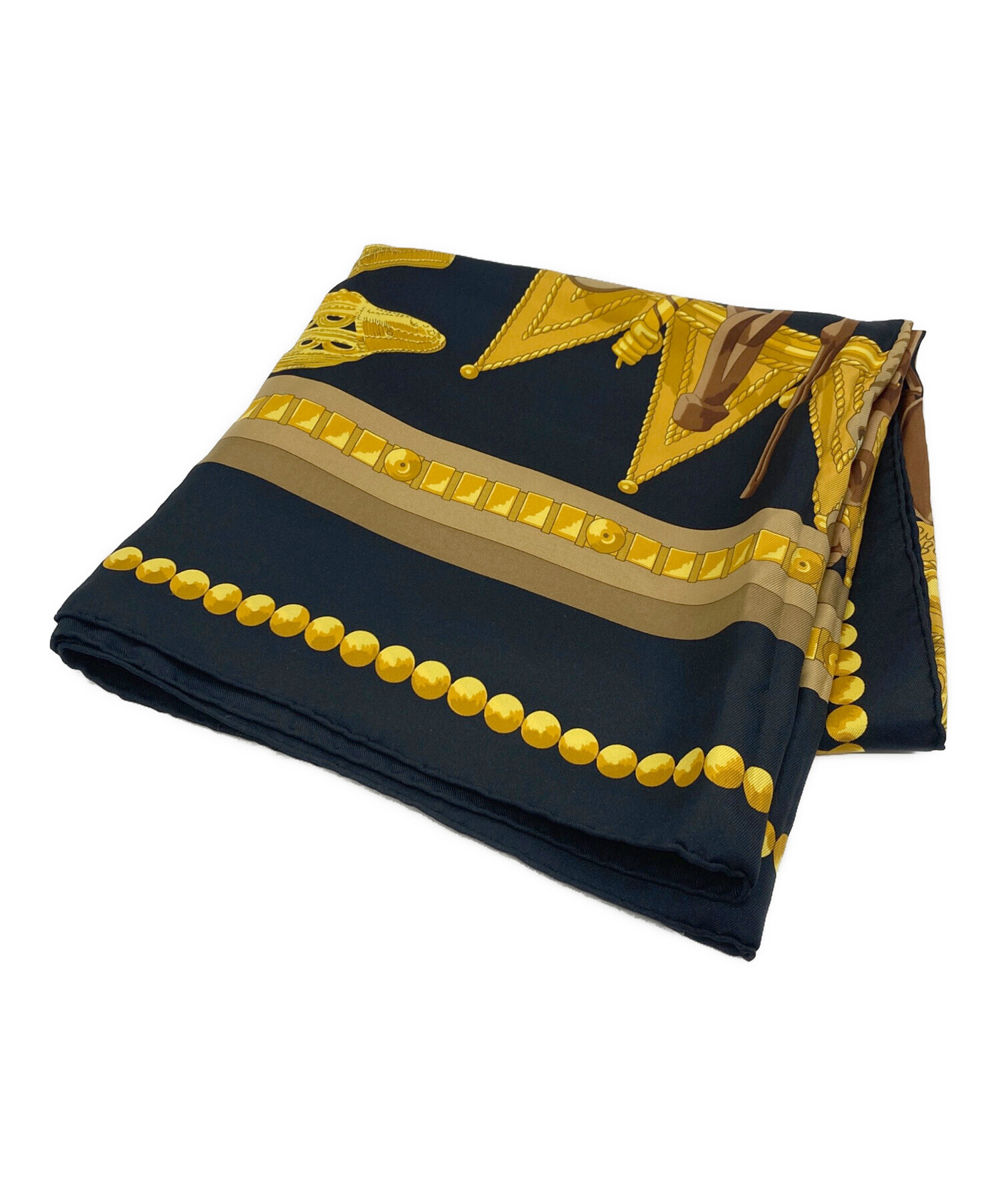 • HERMES(エルメス)HERMES (エルメス) カレ90 Eperon d'or 黄金の拍車 シルクスカーフ ブラックの古着・服飾アイテム