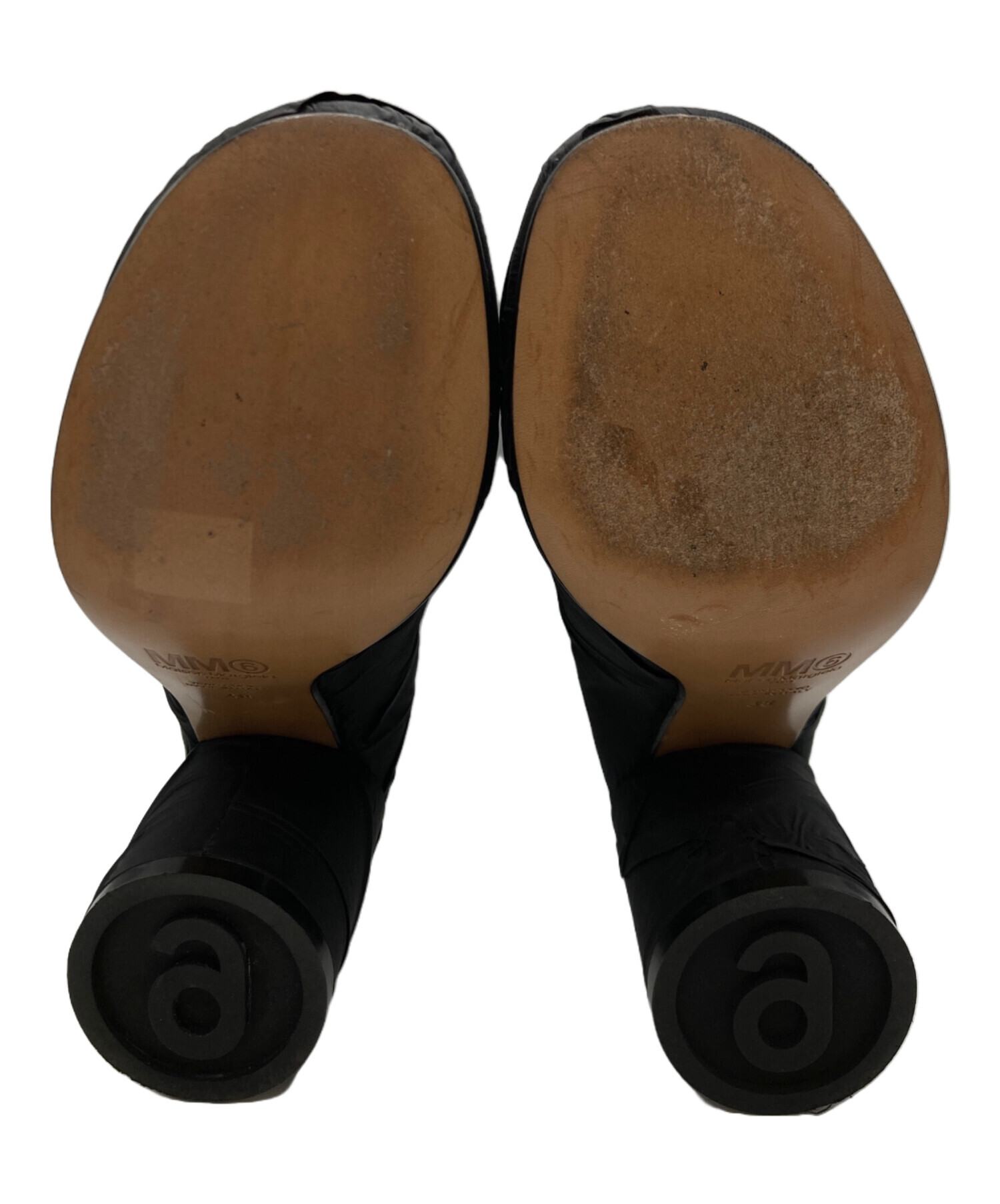 • MM6 Maison Margiela(エムエムシックスメゾンマルジェラ)MM6 Maison Margiela (エムエムシックスメゾンマルジェラ) 6-HEEL クラッシュドブーツ ブラック サイズ:38の古着・服飾アイテム ヒール小ヨゴレ