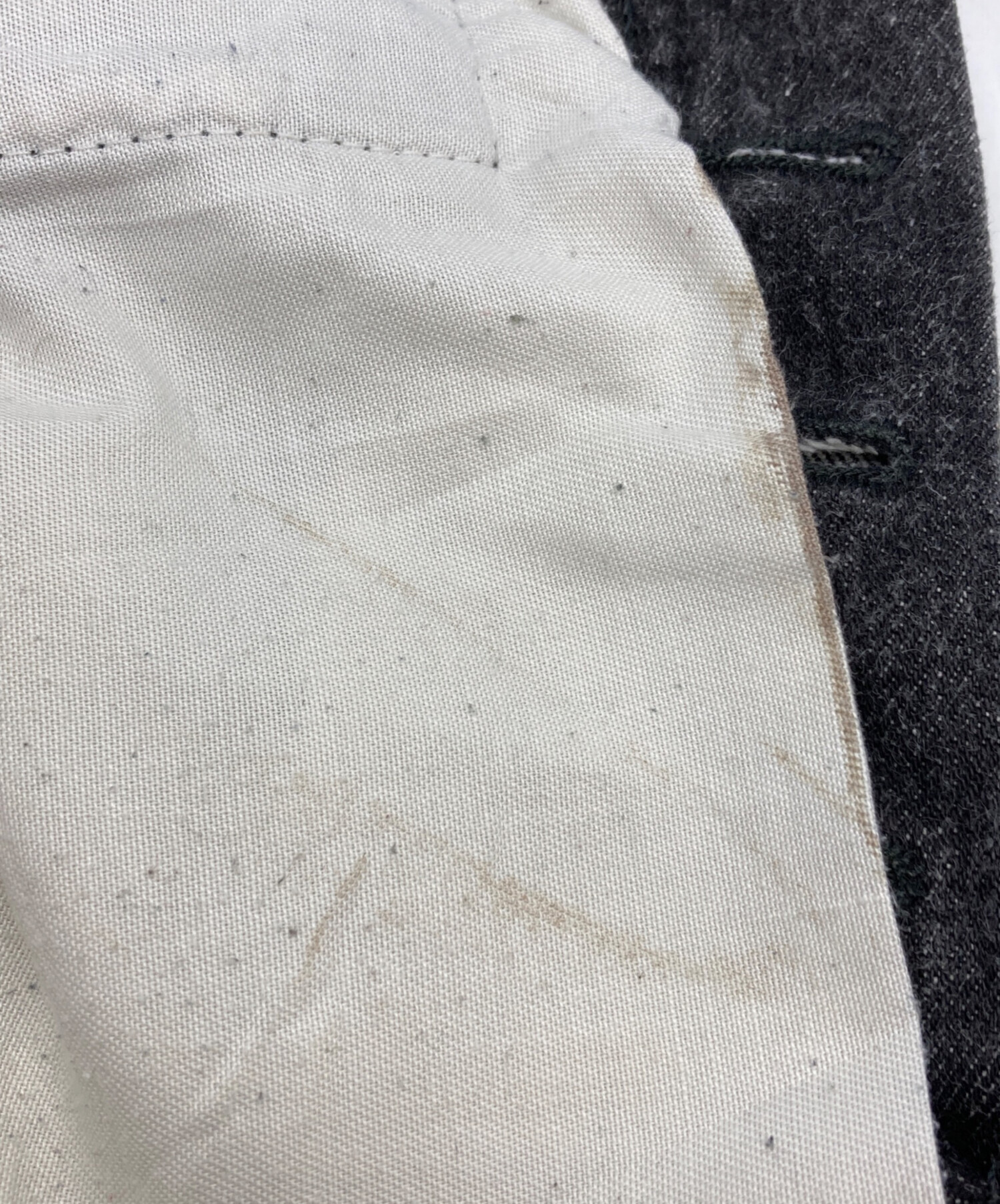目立つシミや汚れ、におい等がある場合は商品画像や説明文にて極力表記させていただいておりますが、中古品という商品の特性上、全ての瑕疵や不備、洋服直し箇所を撮影・記載をすることは難しくなっております。また、ほとんどのアイテムは店頭と併売しておりますため、出品掲載時からコンディションが変動している場合もございます。あらかじめご了承くださいませ。