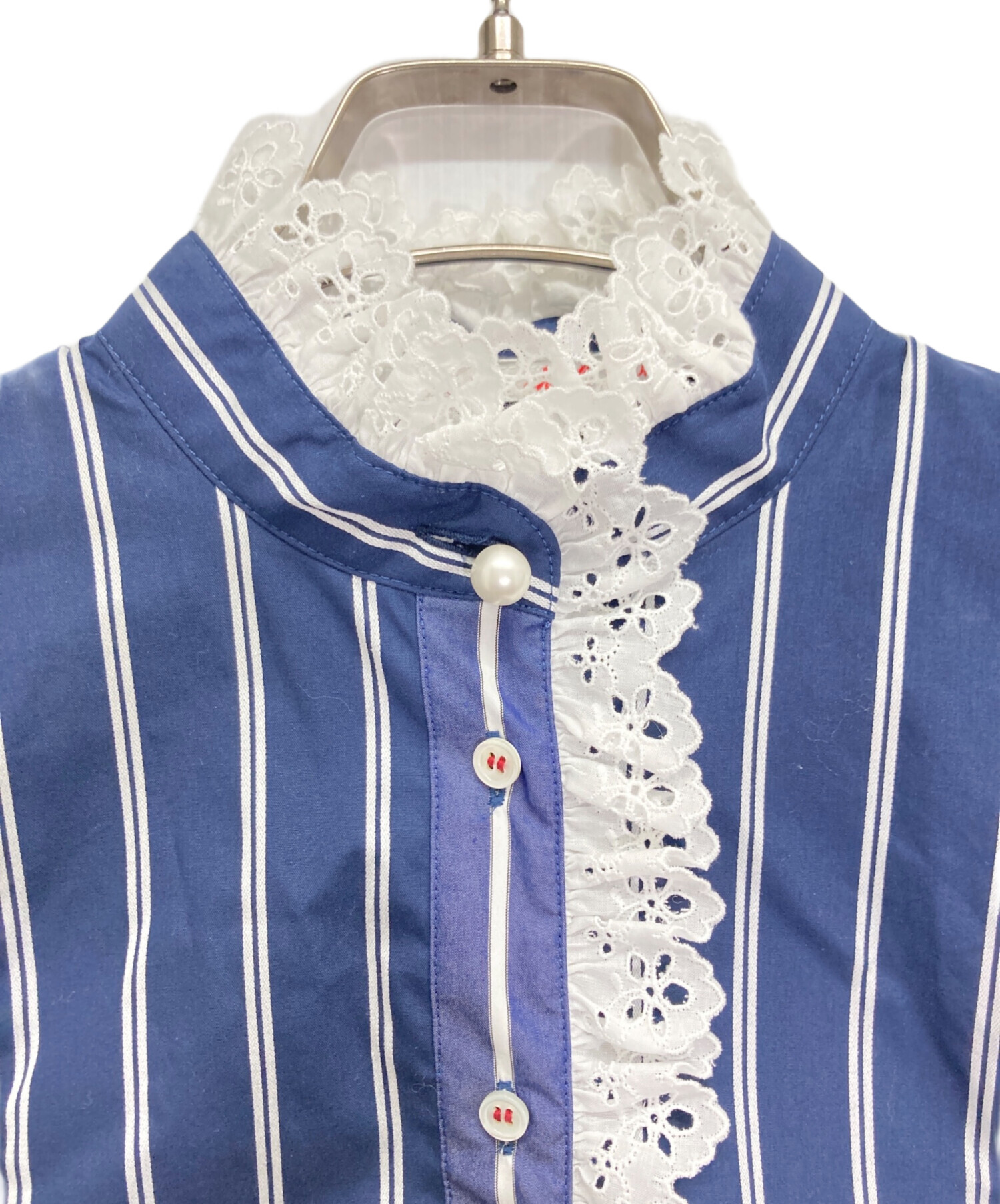 | アイテム名 | パールボタン ストライプ フリル プルオーバーブラウス |