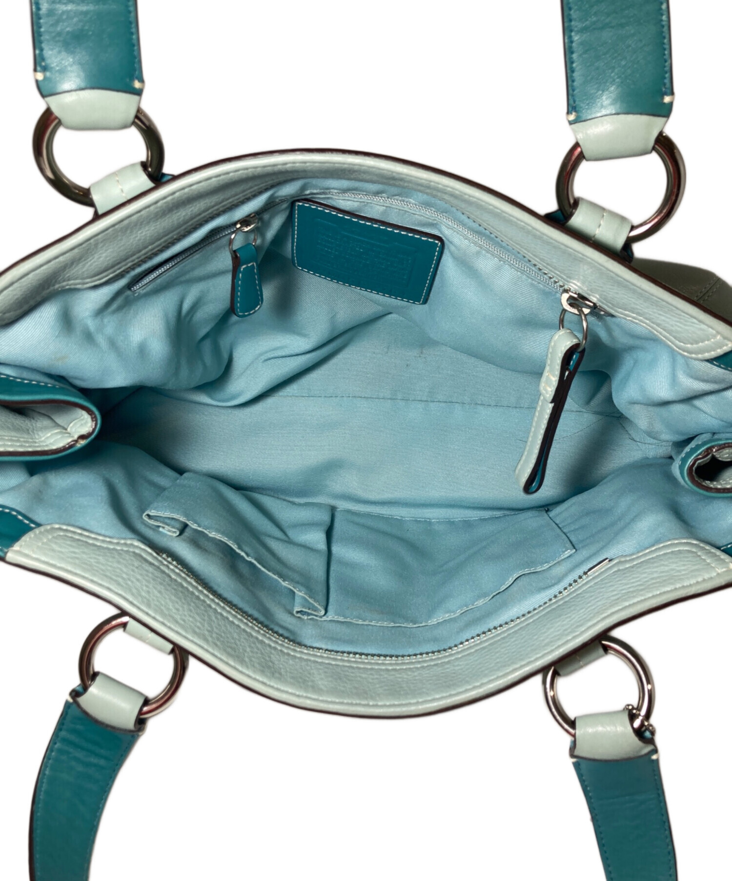 • COACH(コーチ)COACH (コーチ) ハンプトンズ ハンドバッグ ブルーの古着・服飾アイテム ハンドルヨゴレ