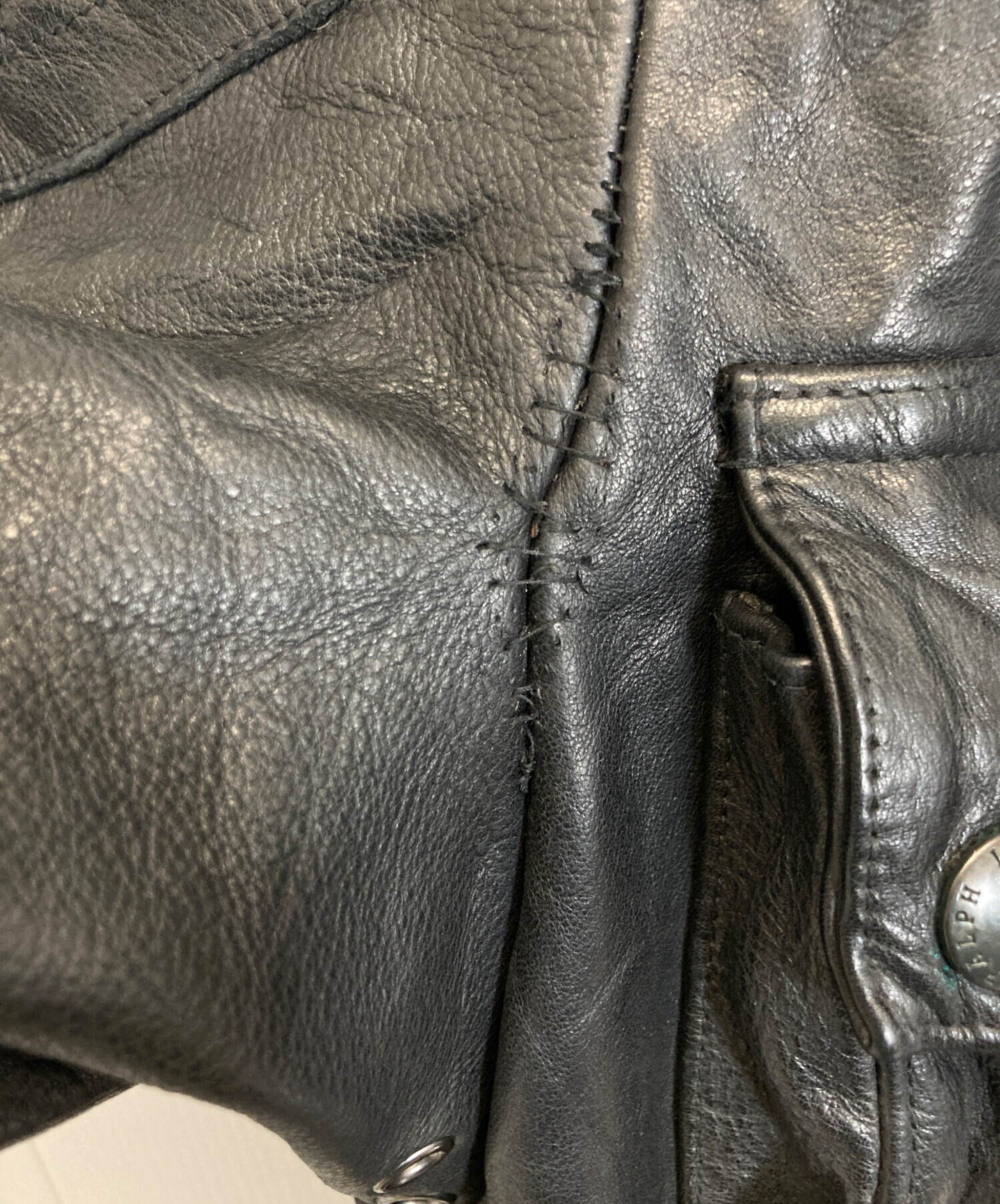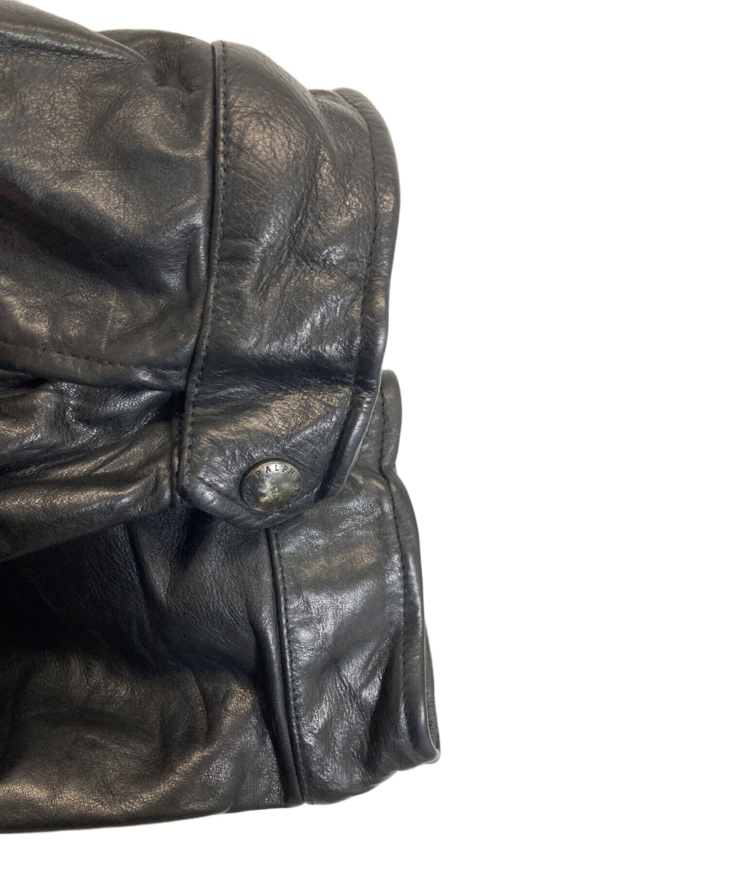 • POLO RALPH LAUREN(ポロ・ラルフローレン)POLO RALPH LAUREN (ポロ・ラルフローレン) レザーモーターサイクルジャケット ブラック サイズ:Lの古着・服飾アイテム 脇リペア
