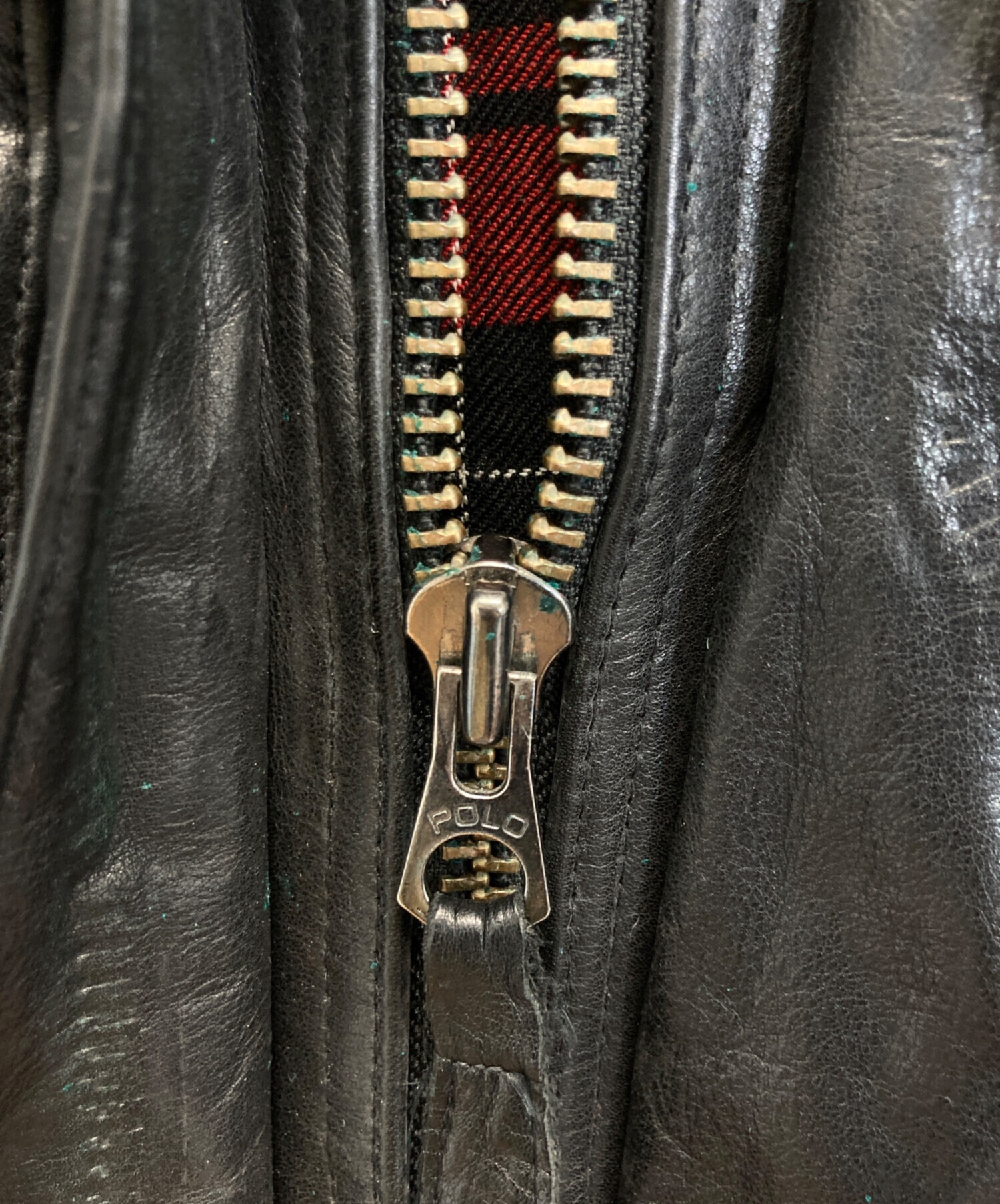 • POLO RALPH LAUREN(ポロ・ラルフローレン)POLO RALPH LAUREN (ポロ・ラルフローレン) レザーモーターサイクルジャケット ブラック サイズ:Lの古着・服飾アイテム 青サビ有