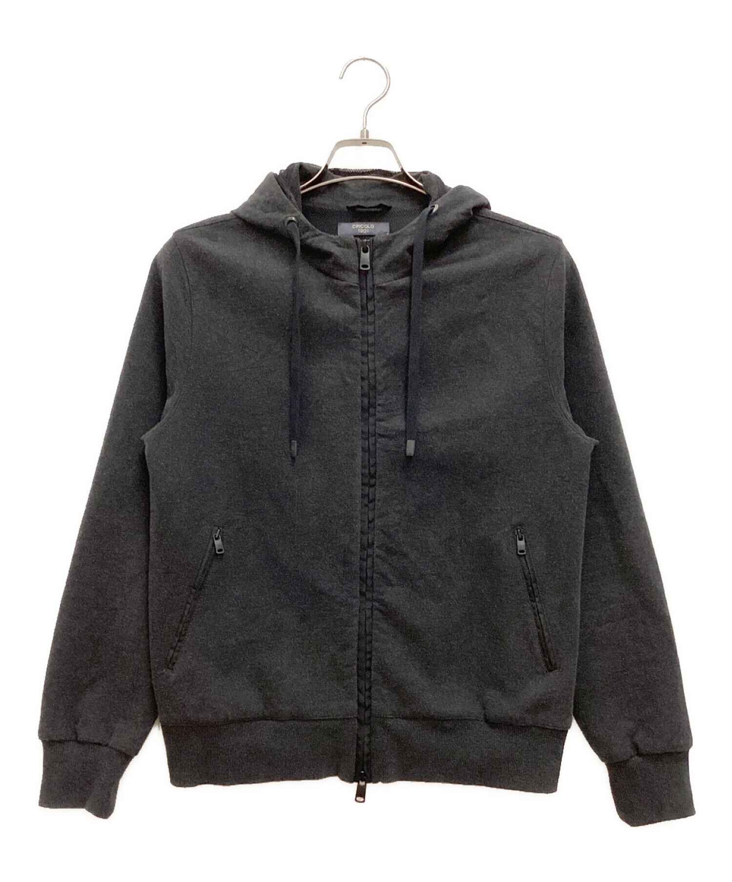 • CIRCOLO 1901(チルコロ1901)CIRCOLO 1901 (チルコロ1901) ダブルジップフーデッドジャケット コットン 起毛 裏地メッシュ グレー サイズ:XSの古着・服飾アイテム ヨゴレ・やや毛羽立ち有