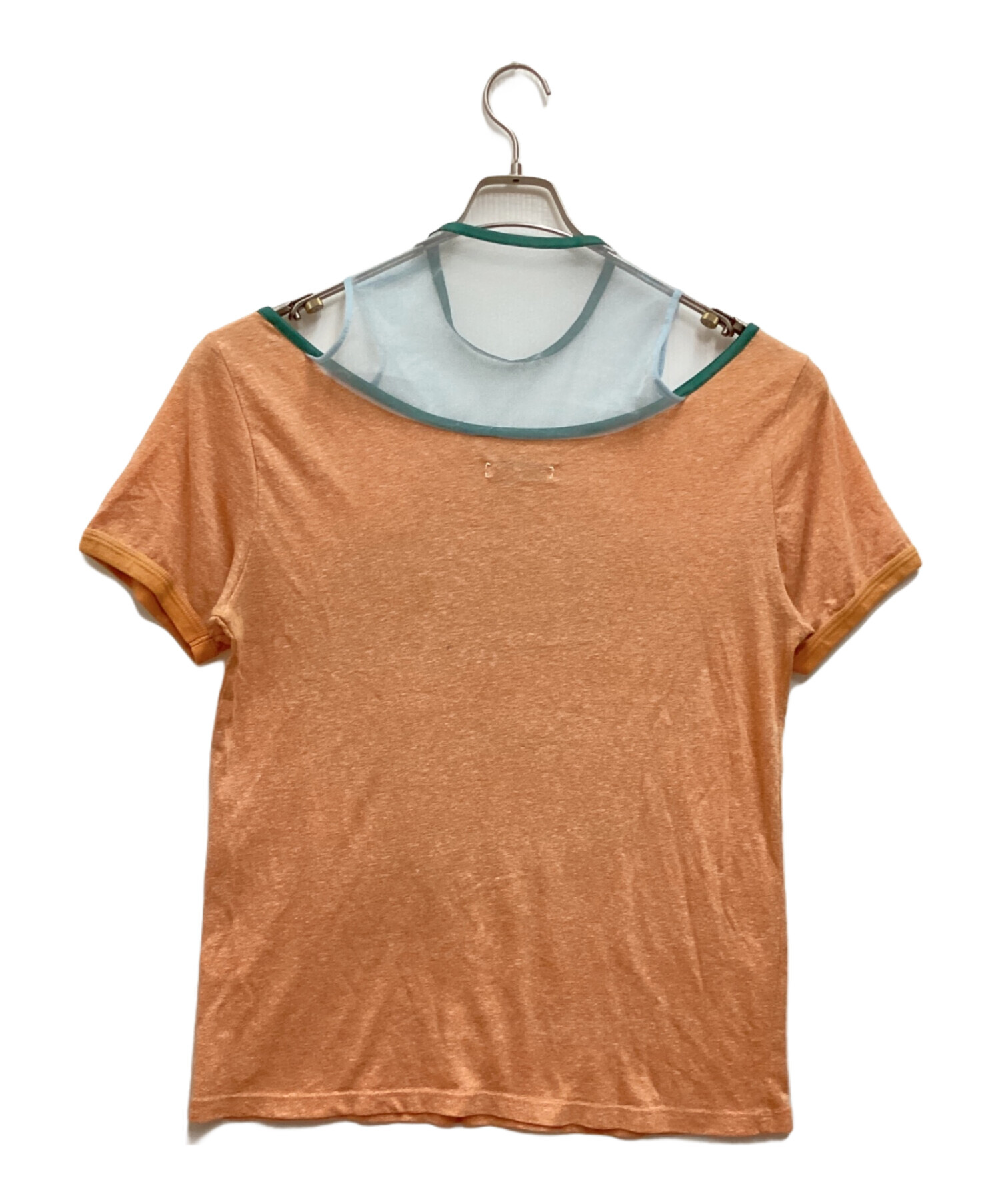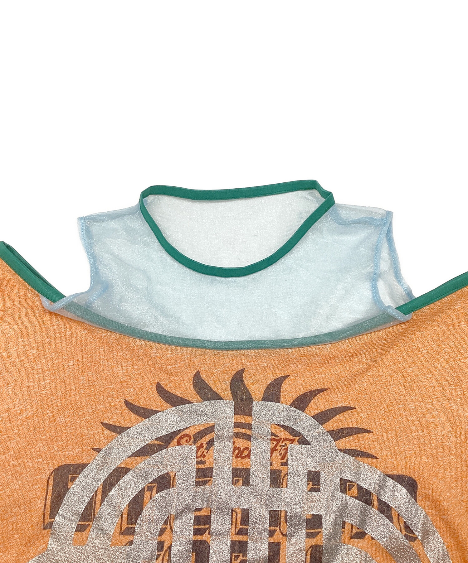 リメイクリンガーTシャツ オーガンジー ボートネック プリント コットン