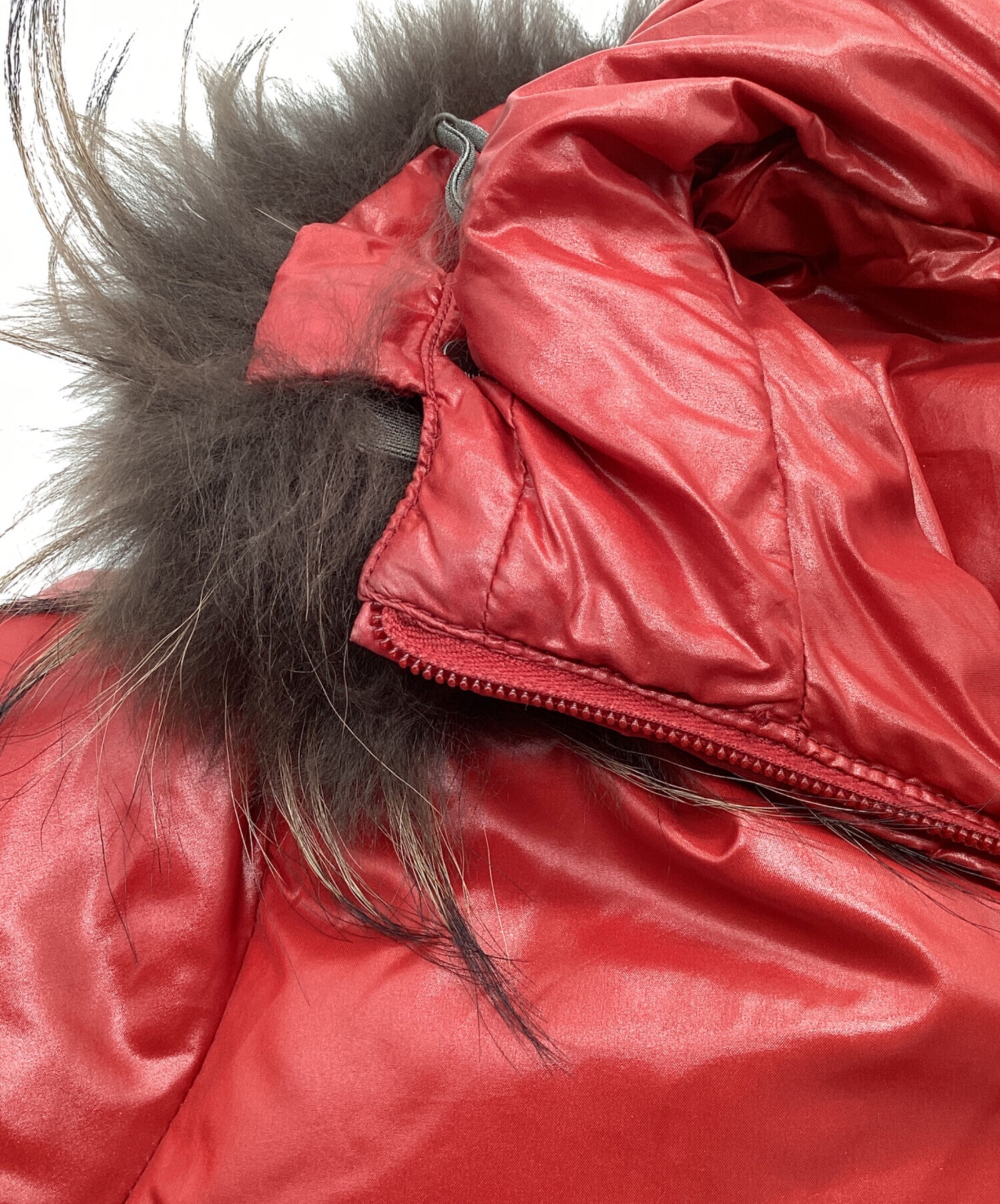 • DUVETICA(デュベティカ)DUVETICA (デュベティカ) ダウンジャケット フーディ ファー ADHARA レッド サイズ:38の古着・服飾アイテム ヨゴレ有
