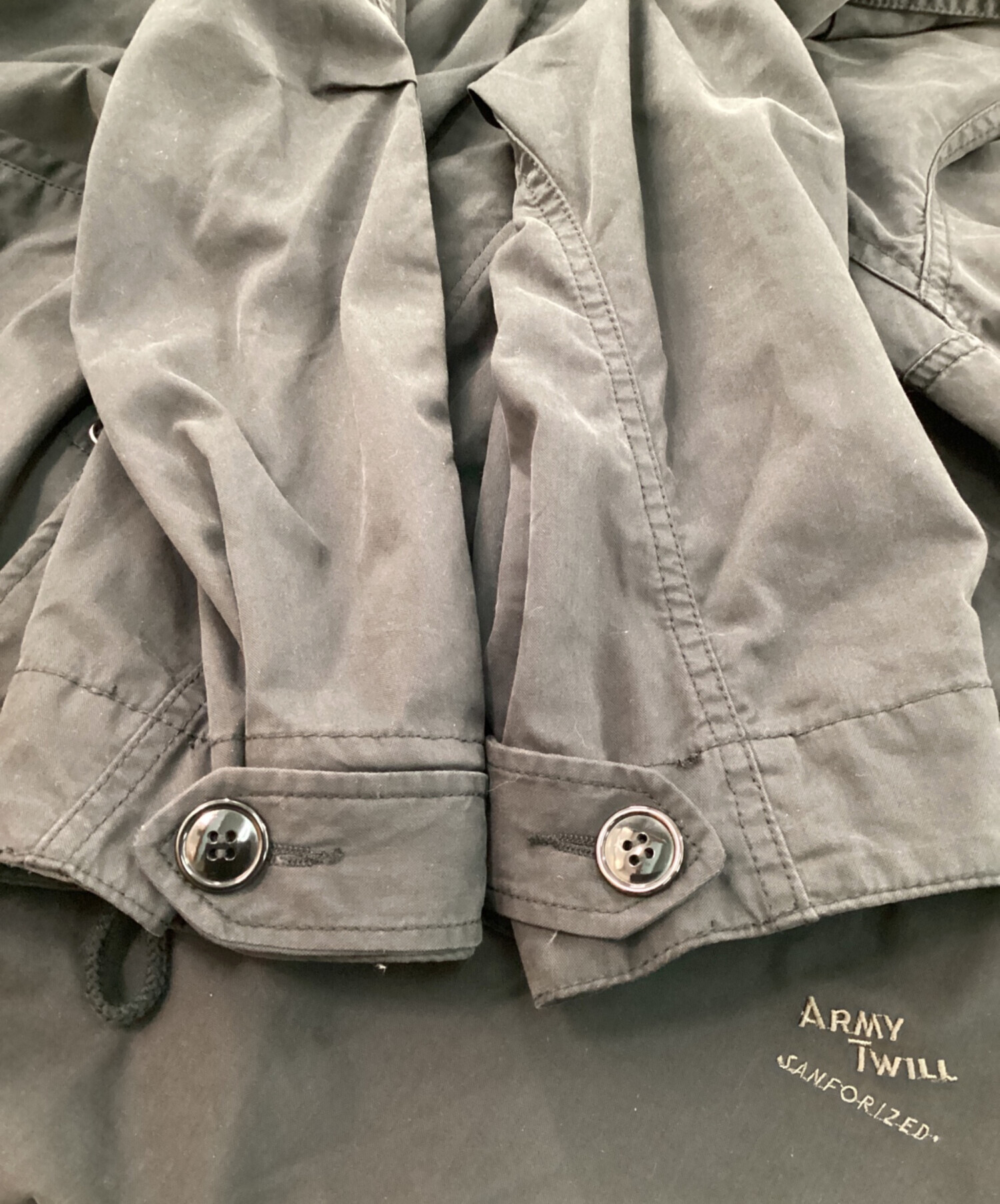 • ARMY TWILL(アーミーツイル)ARMY TWILL (アーミーツイル) JOURNAL STANDARD (ジャーナルスタンダード) フィッシュテールコート ブラック サイズ:Mの古着・服飾アイテム 袖口ヨゴレ有