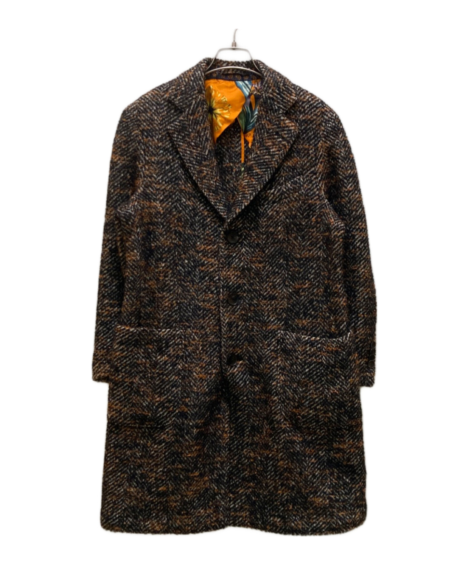 裏地フラワーデザインツイードチェスターコート
