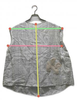 刺繍デザインチェックノースリーブブラウス