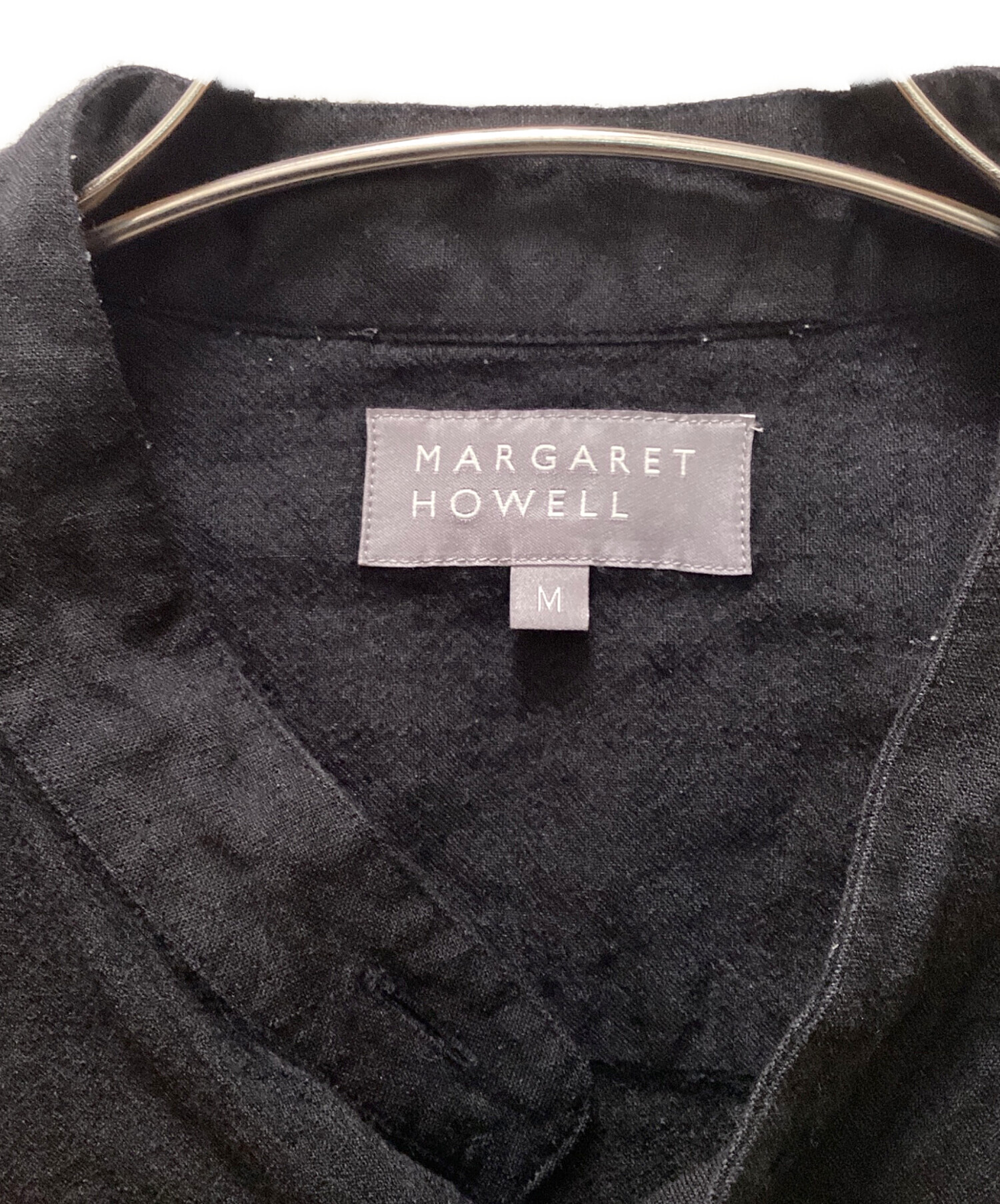 • MARGARET HOWELL(マーガレットハウエル)MARGARET HOWELL (マーガレットハウエル) ドライウール リネン スタンドカラーシャツ ブラック サイズ:Mの古着・服飾アイテム ヨゴレ有