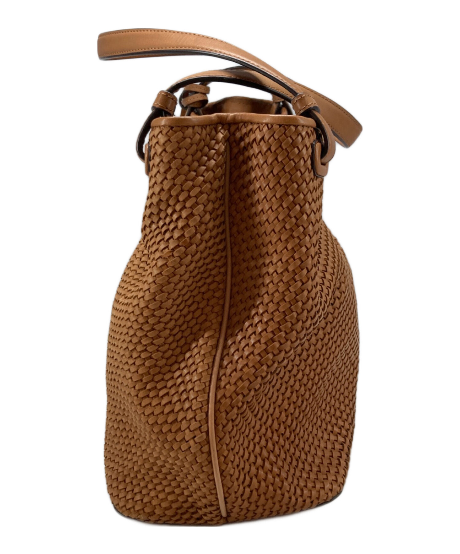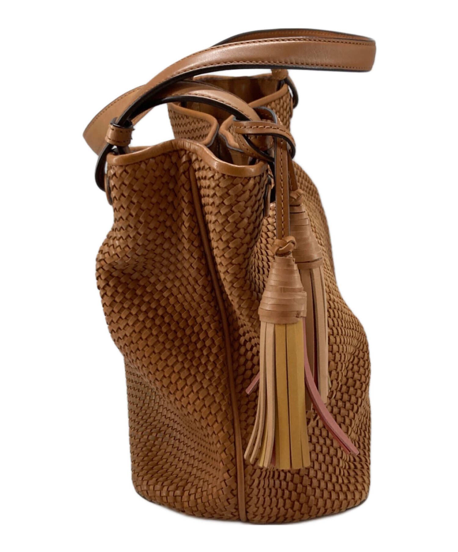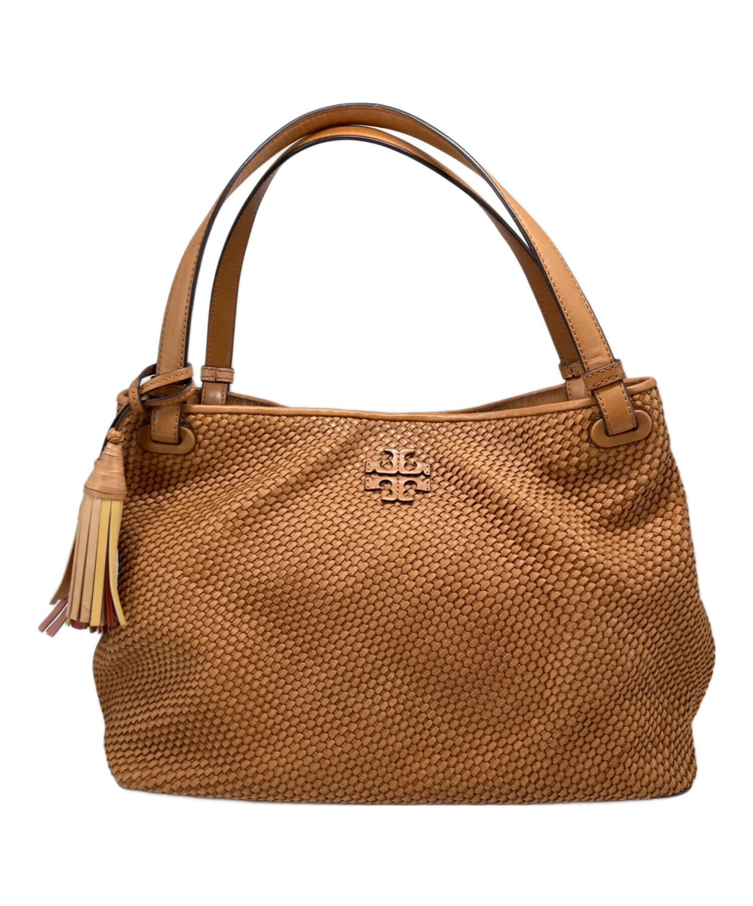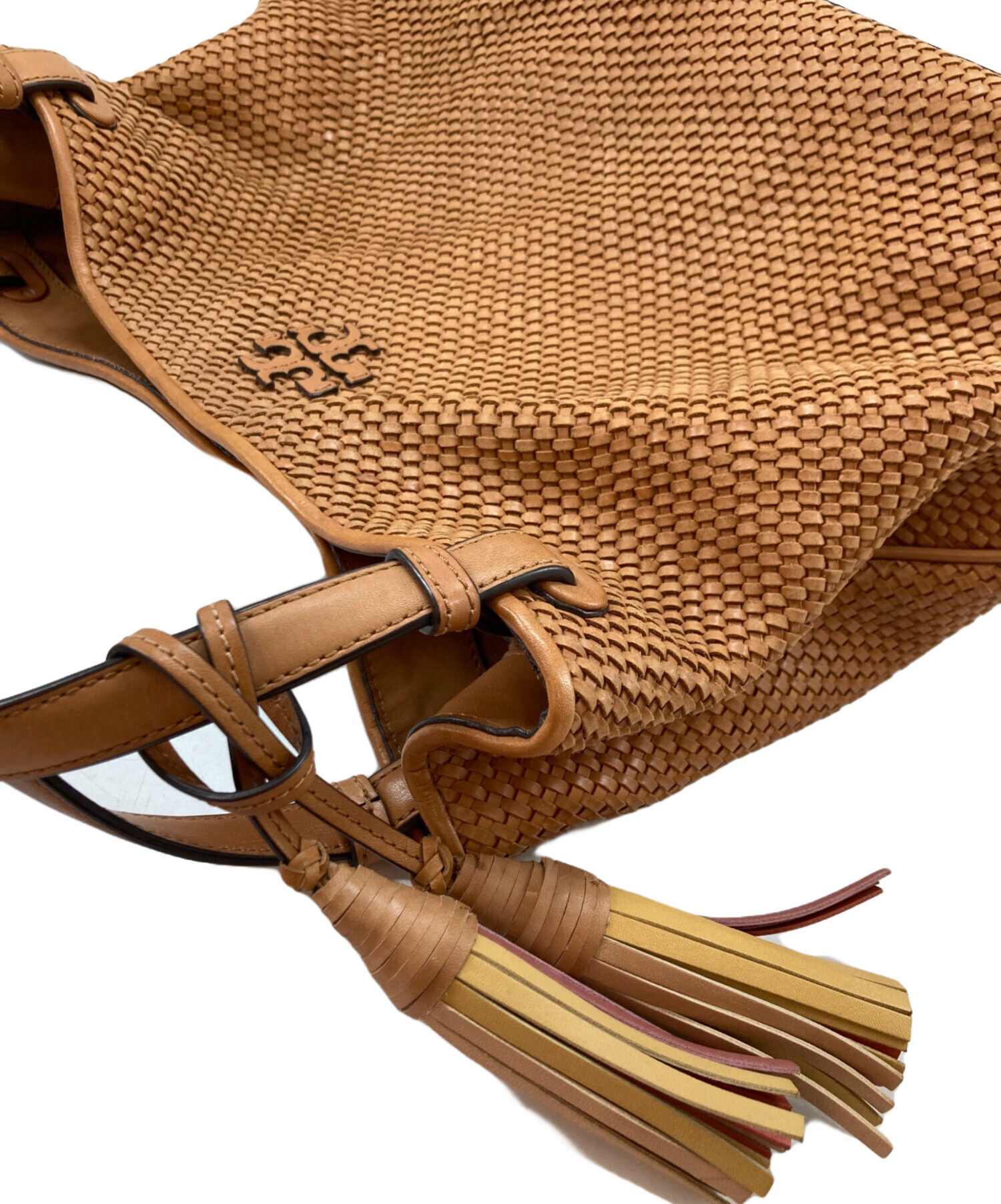 • TORY BURCH(トリーバーチ)TORY BURCH (トリーバーチ) メッシュレザータッセルトートバック ベージュの古着・服飾アイテム コバ割れ有