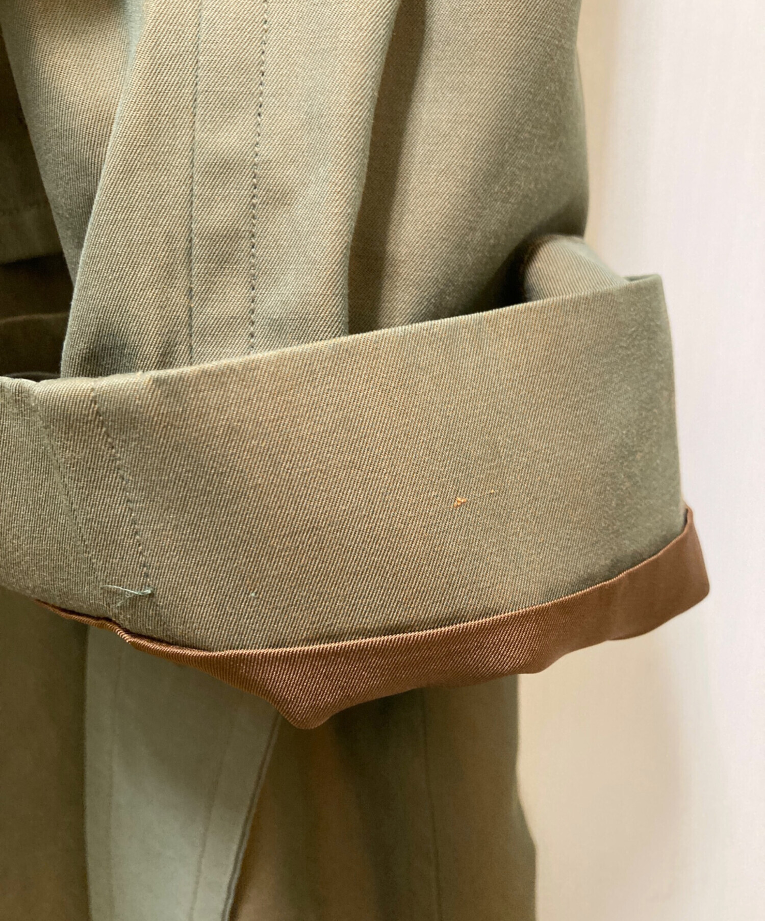 • Burberry's(バーバリー)Burberry's (バーバリーズ) 裏ノバチェックトレンチコート カーキ サイズ:Lの古着・服飾アイテム 袖口汚れ有