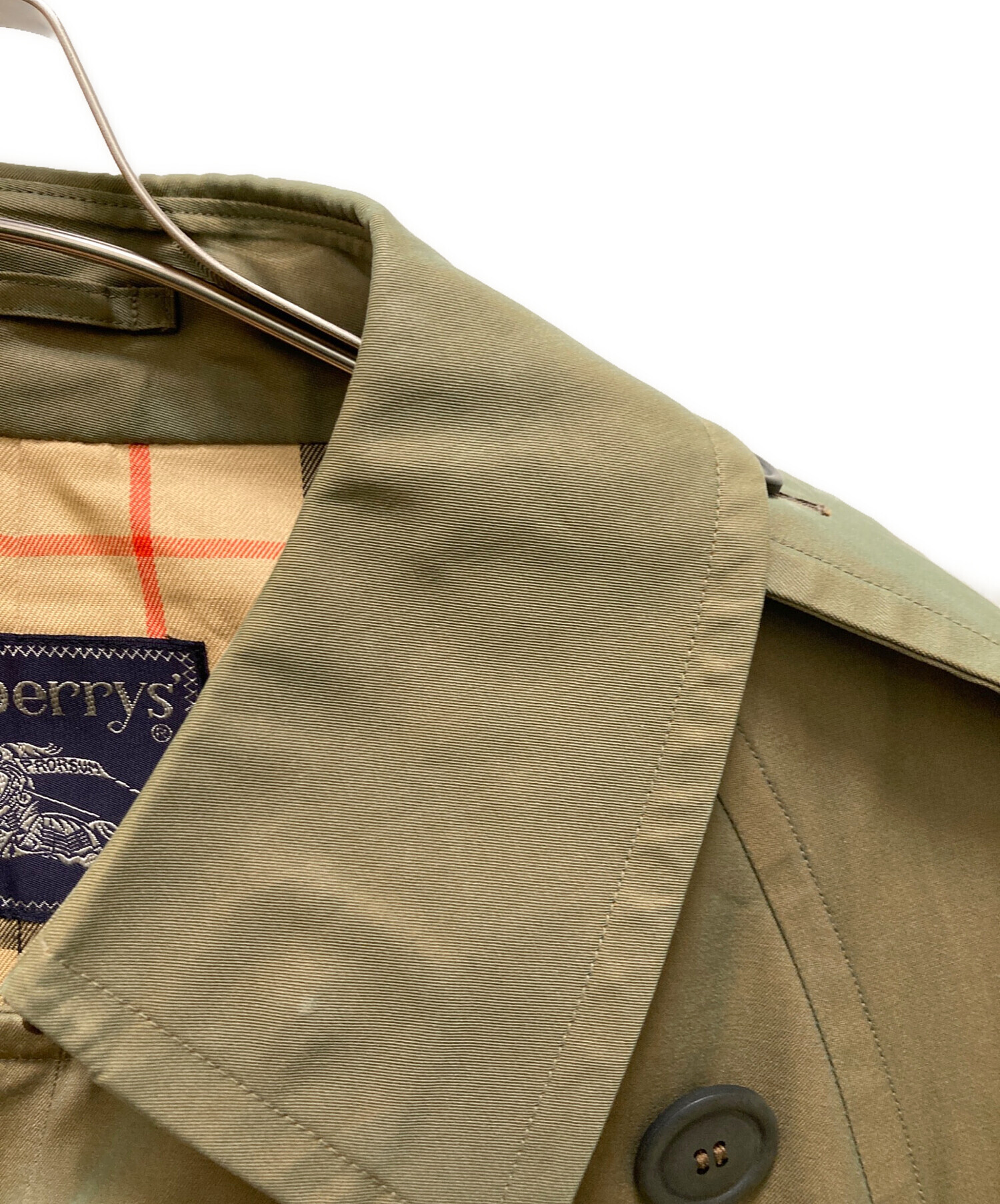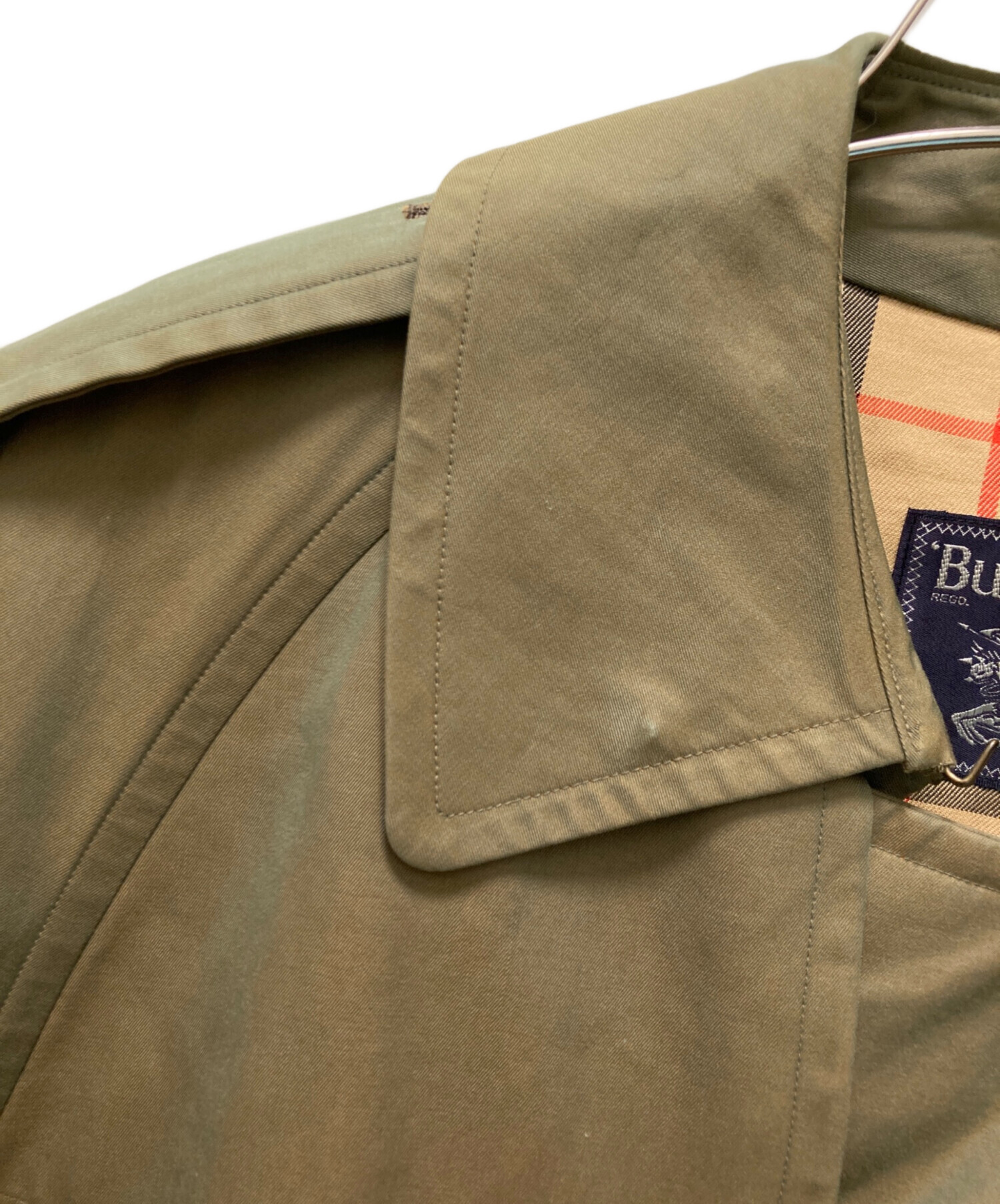 • Burberry's(バーバリー)Burberry's (バーバリーズ) 裏ノバチェックトレンチコート カーキ サイズ:Lの古着・服飾アイテム 襟ヨゴレ有