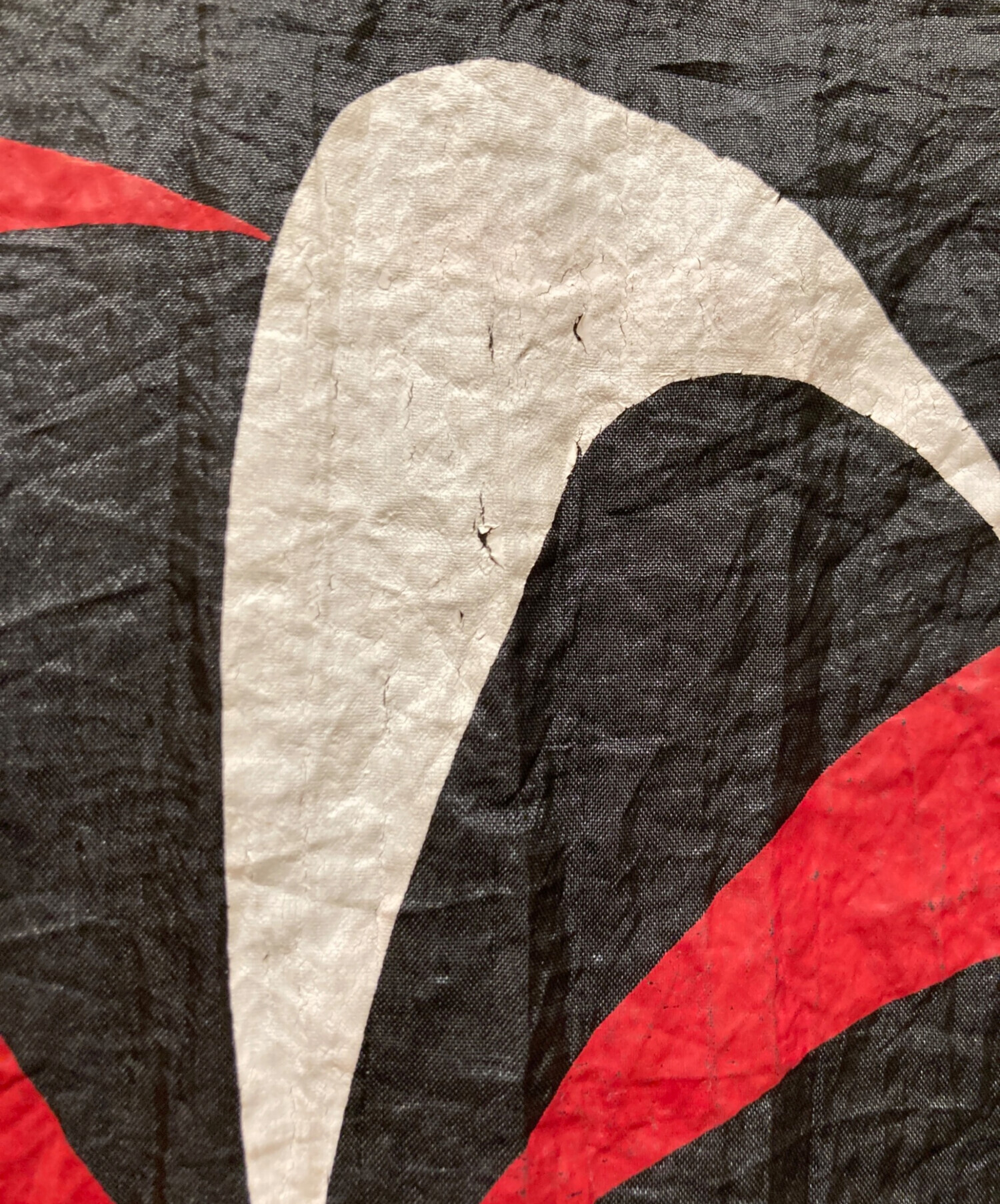 • NIKE(ナイキ)NIKE (ナイキ) ヴィンテージ風車ロゴプリントジャケット レッド×ブラック サイズ:Ⅼの古着・服飾アイテム プリントひび割れ有