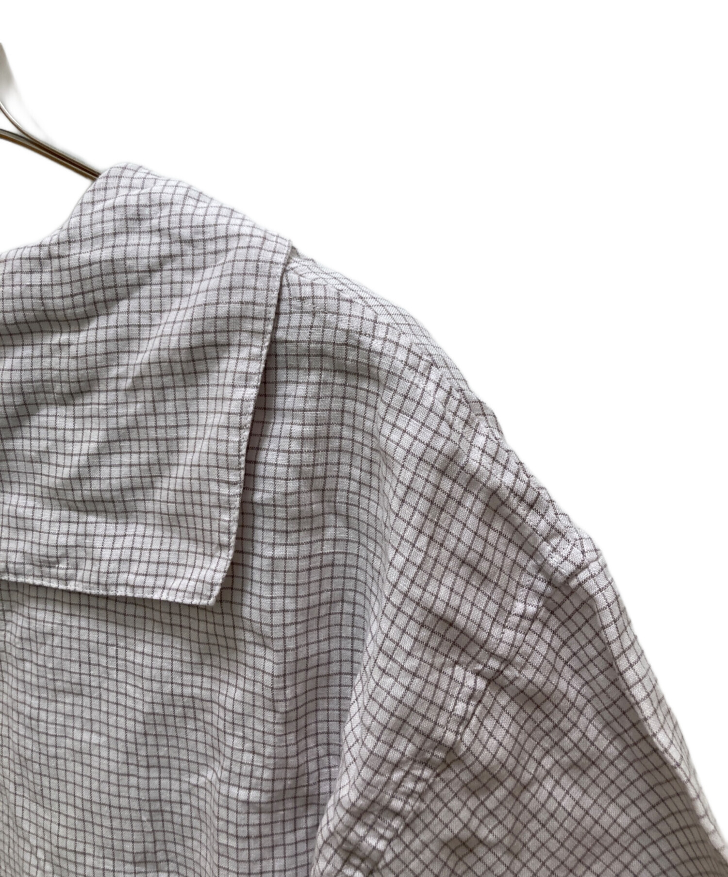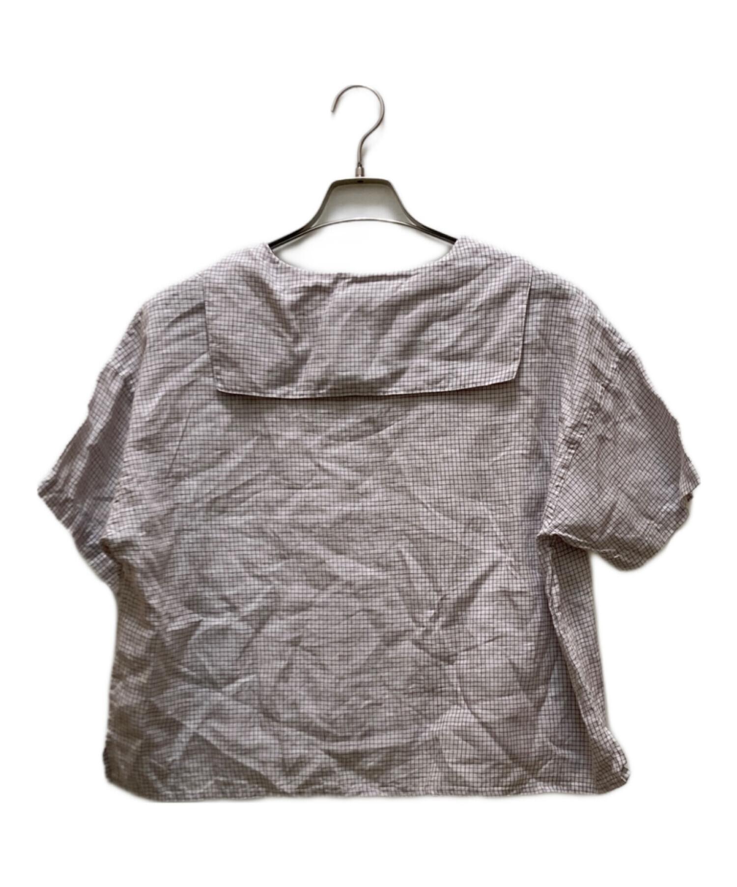 | アイテム名 | セーラーカラーチェックブラウス / Linen Half Sleeve Sailor Pullover Shirt Check / 半袖ブラウス |