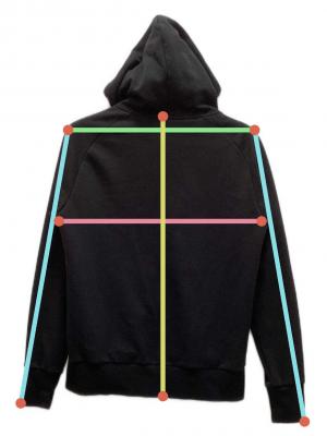 左右の肩の縫い目から縫い目までの長さ