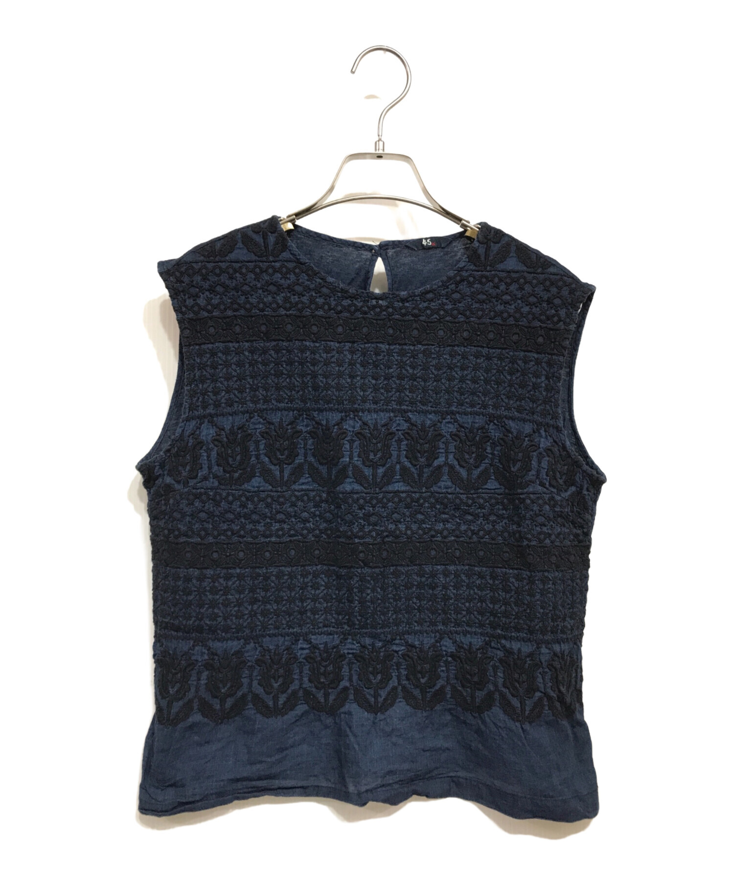 藍染めチューリップ刺繍ブラウス