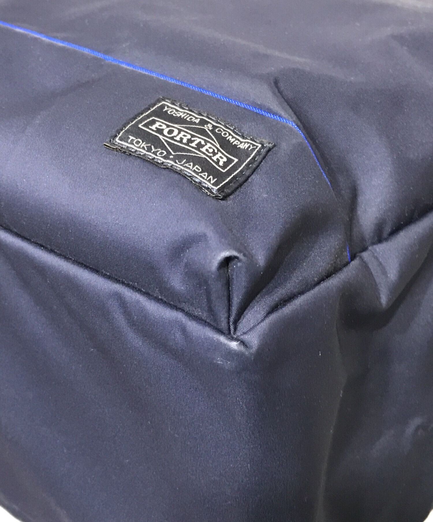 • PORTER GIRL MOUSSE(ポーターガール ムース)PORTER GIRL MOUSSE (ポーターガール ムース) TOTE BAG ネイビーの古着・服飾アイテム 角スレ、小穴ダメージ