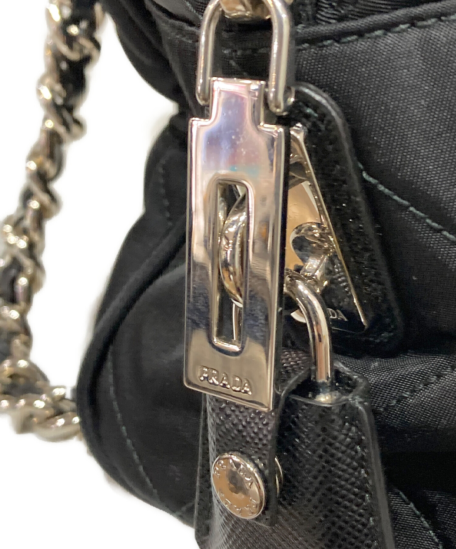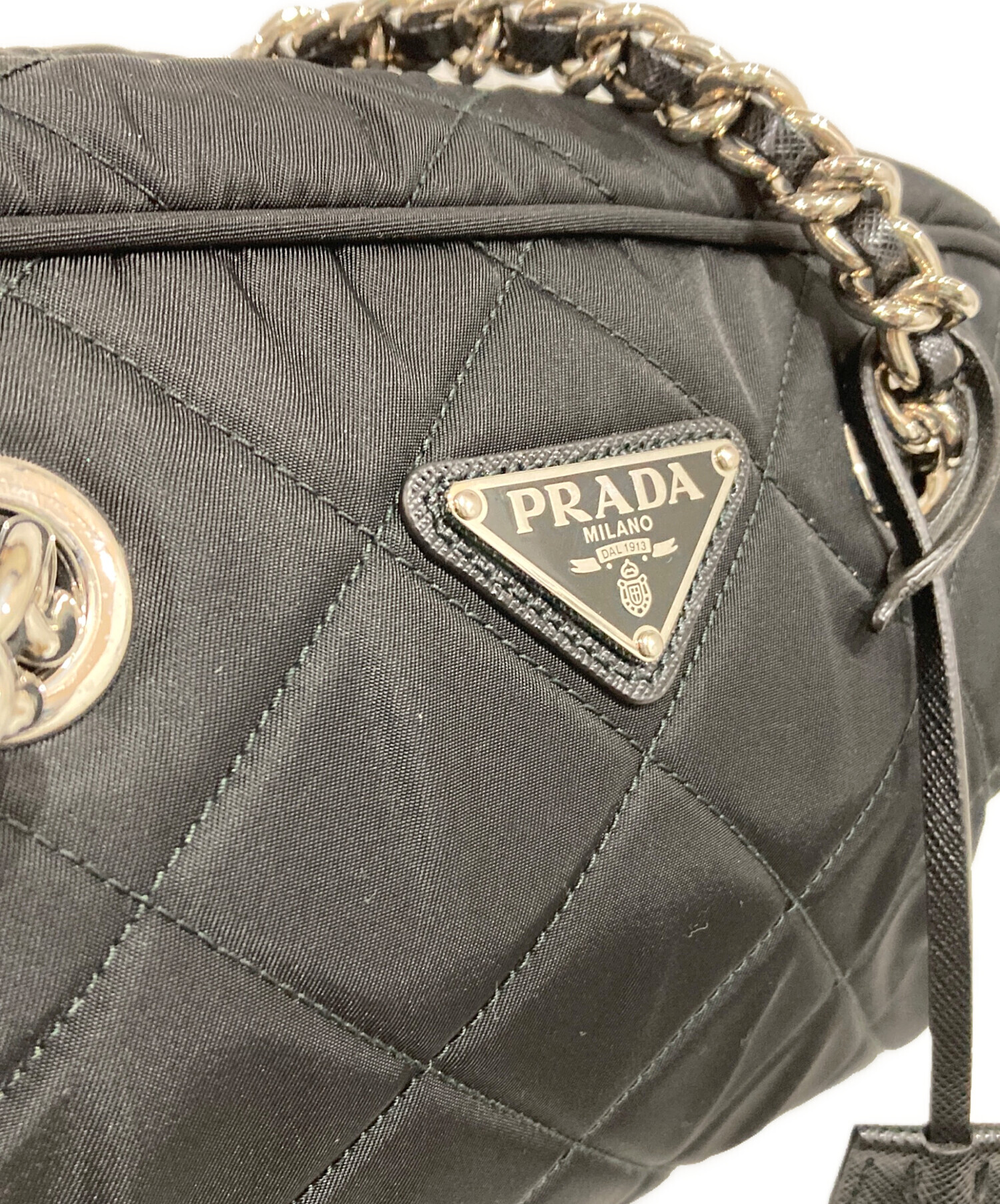 | スタッフコメント | プラダのナイロン素材のチェーンショルダーバッグ。キルティング加工されたナイロンとチェーンストラップが特徴的なデザインです。このモデルは、プラダのアイコン的なナイロンバッグの一つで、機能性とスタイリッシュさを兼ね備えていると評価されています。 |